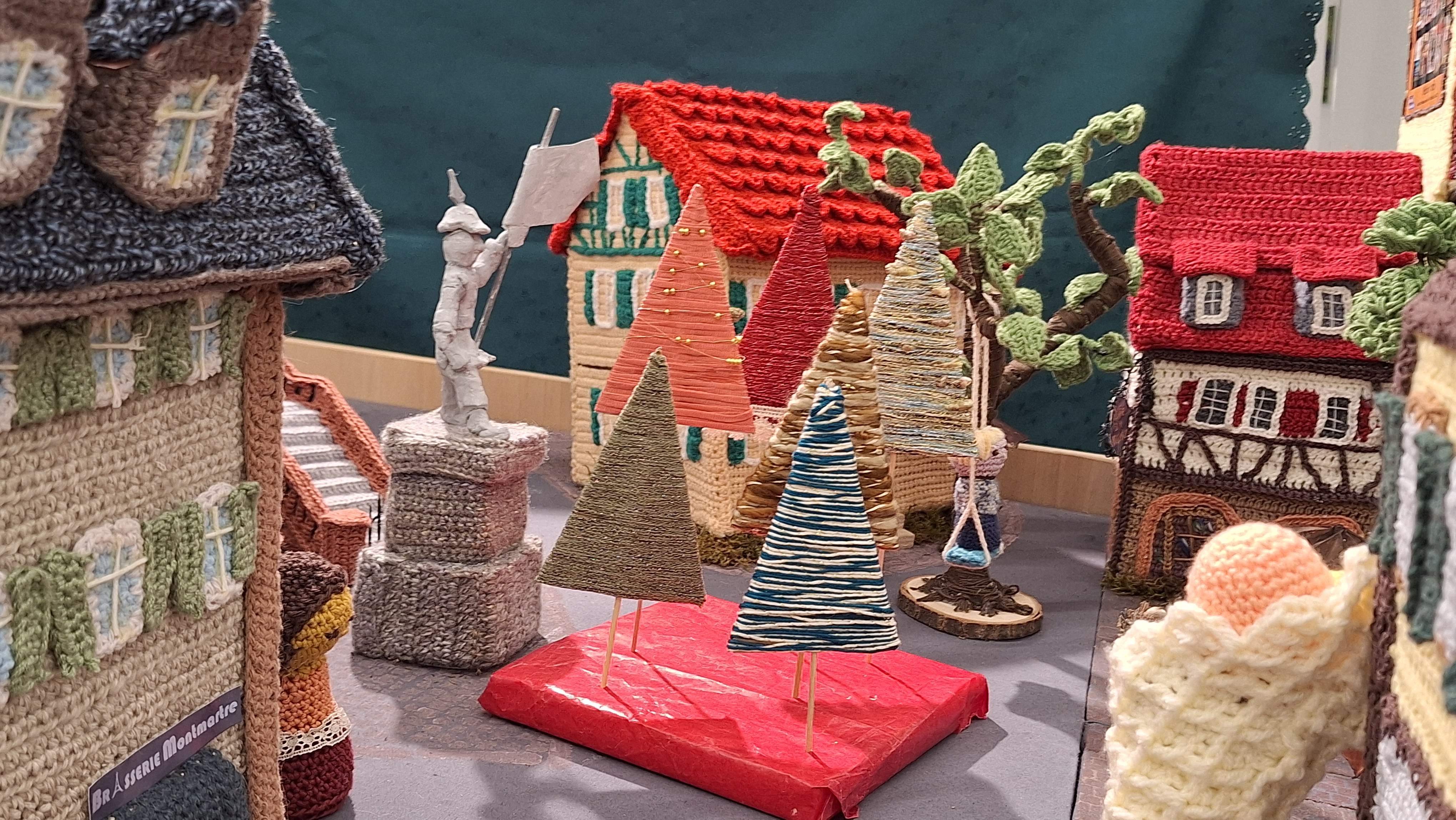 Weinheim (Stadt Weinheim)- Der gehäkelte Marktplatz glitzert und leuchtet, Wachenburg und Windeck schmücken Weihnachtsbäume, auch im Hermannshof sind die Bäume geschmückt. Überall funkelt es – ein weihnachtlicher Adventszauber hat sich über das gehäkelte Weinheim gelegt. Die Frauen und Männer der Weinheimer Häkelgruppe, die längst weit über die Region hinaus bekannt sind, haben ihre Ausstellung in der unteren Mall der Weinheim Galerie nochmal weihnachtlich ergänzt.