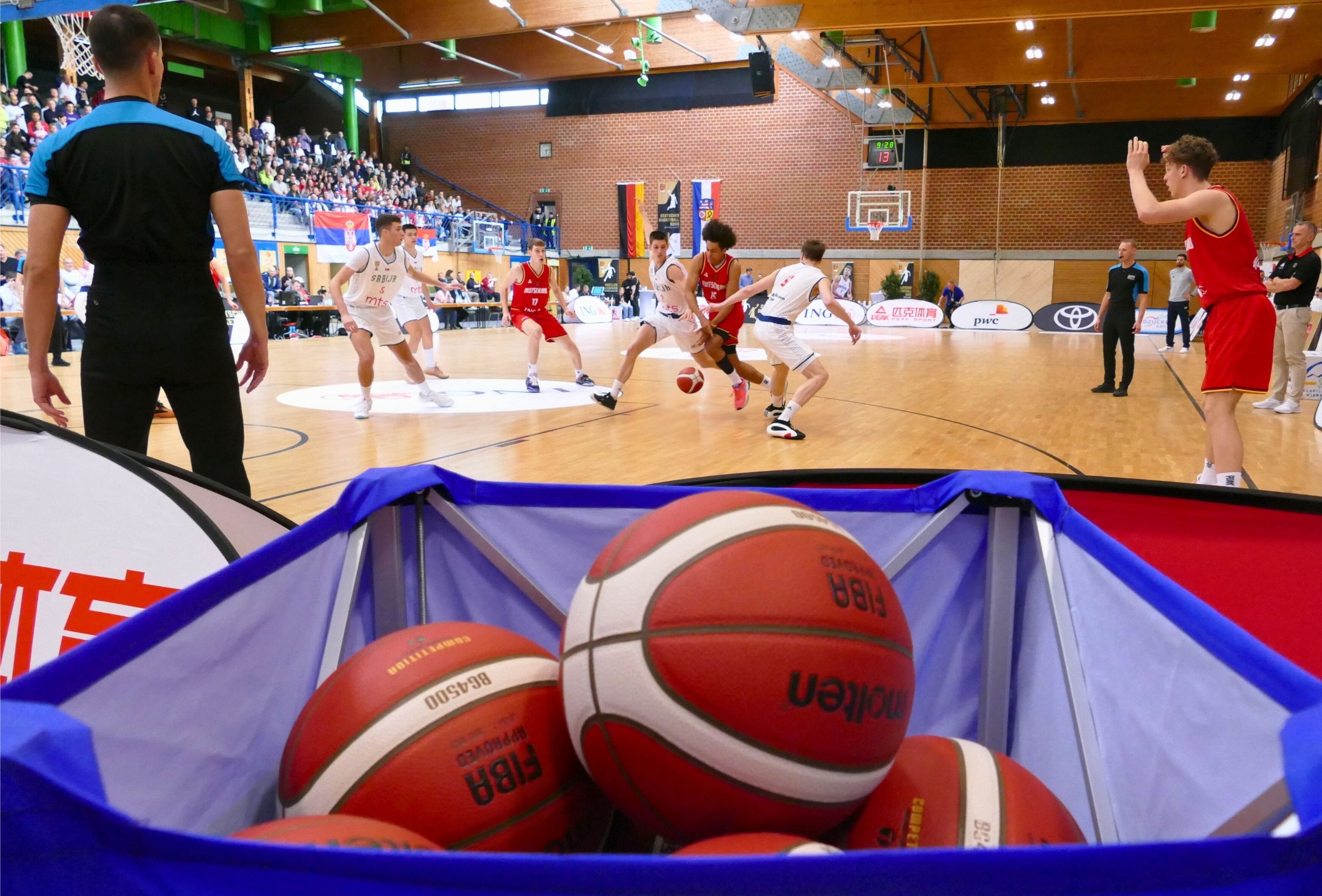 : Die Viernheimer Waldsporthalle wird wieder Schauplatz packender Spiele sein (Archivbild AST 2024 U17 Deutschland – Serbien)