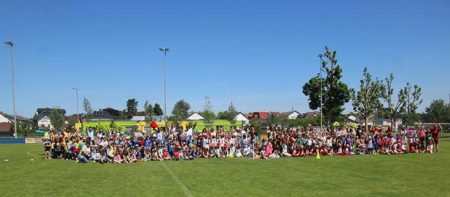 Ciro-Sacco-Gedächtnisturnier für Kindergartenkinder – rund 300 Mädchen und Jungen rennen dem Ball hinterher- Cheerleadergruppen feuern die Spieler an