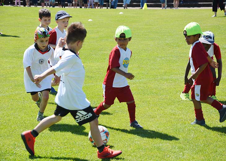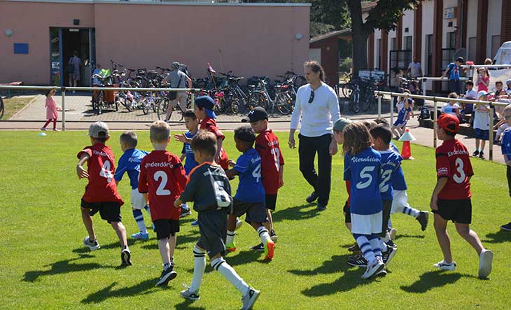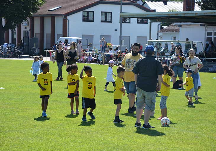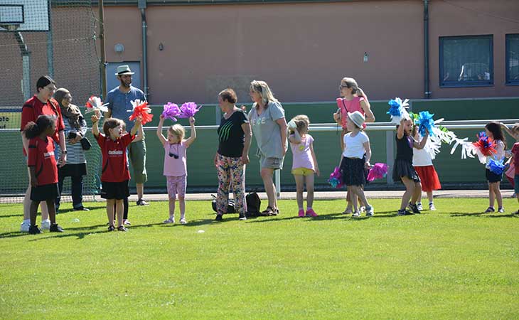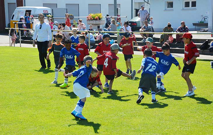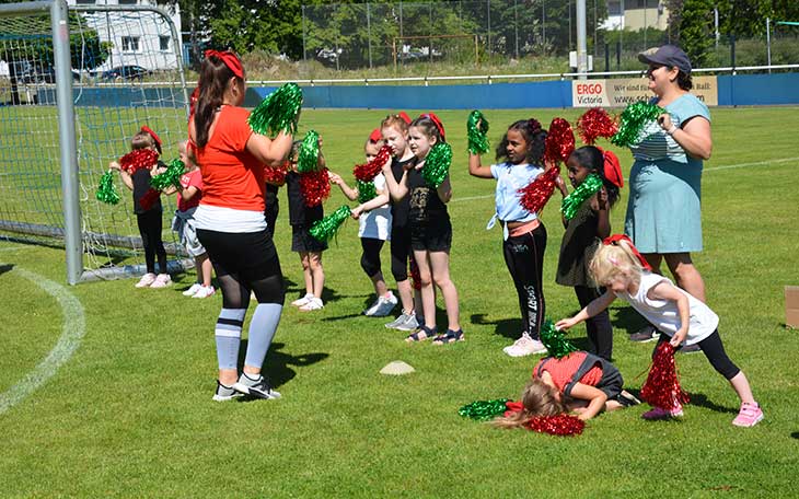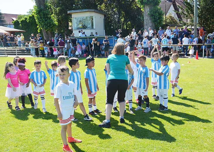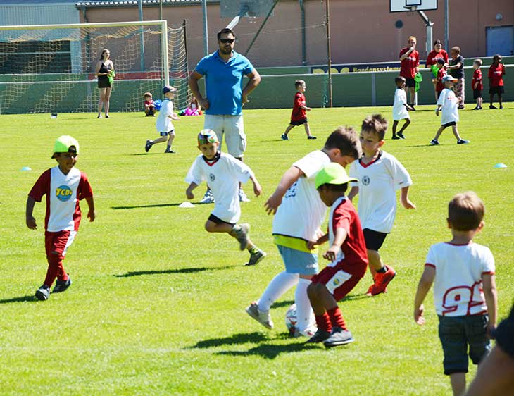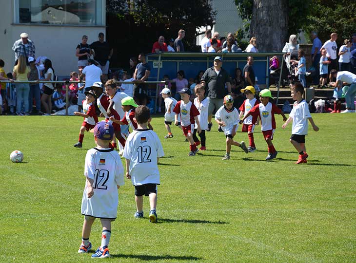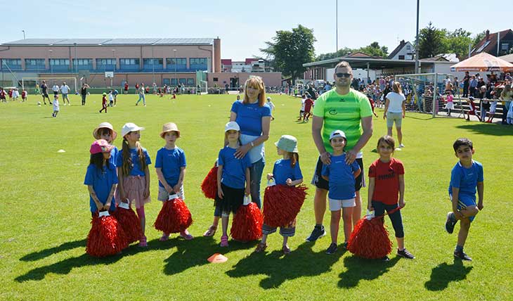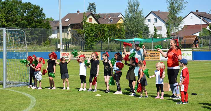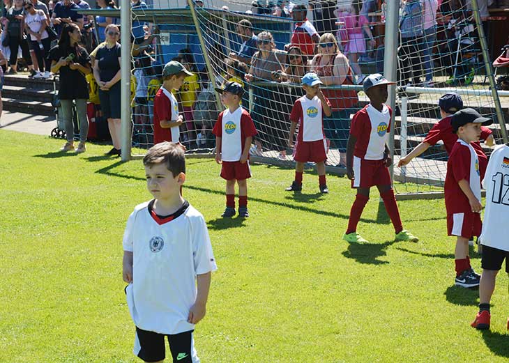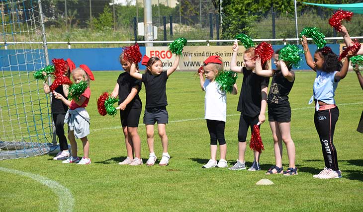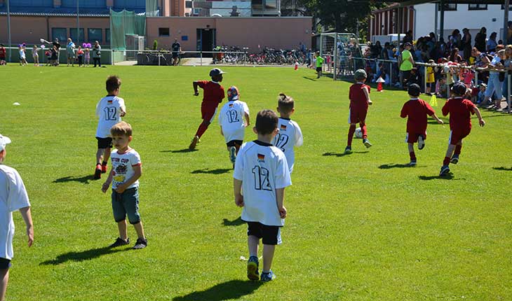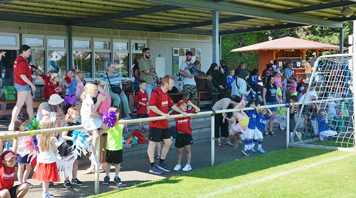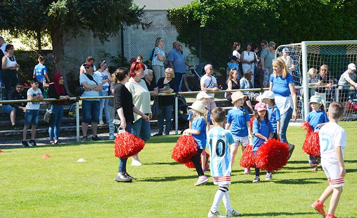 Ciro-Sacco-Gedächtnisturnier für Kindergartenkinder – rund 300 Mädchen und Jungen rennen dem Ball hinterher- Cheerleadergruppen feuern die Spieler an