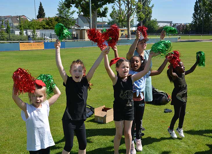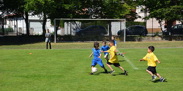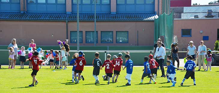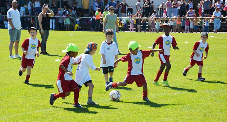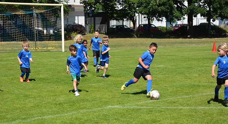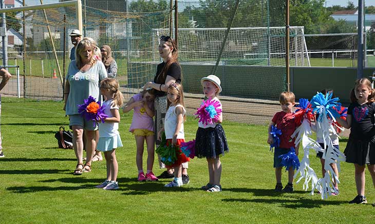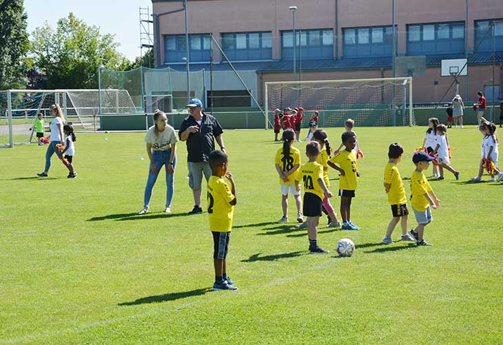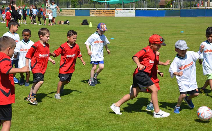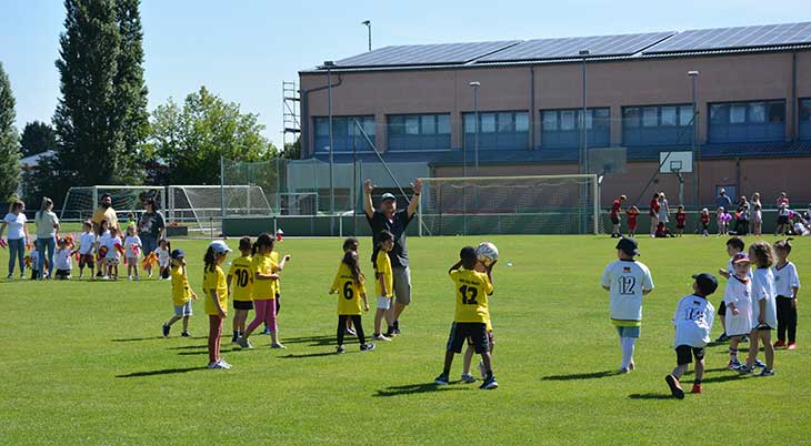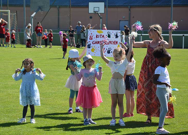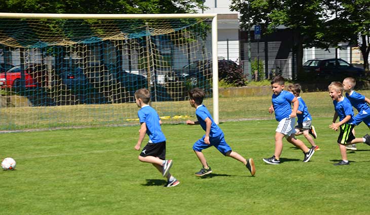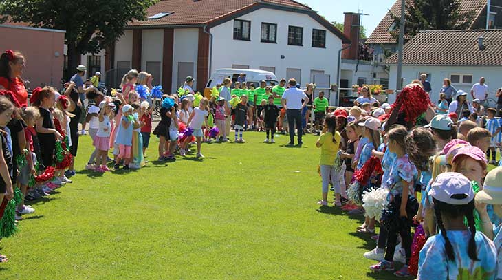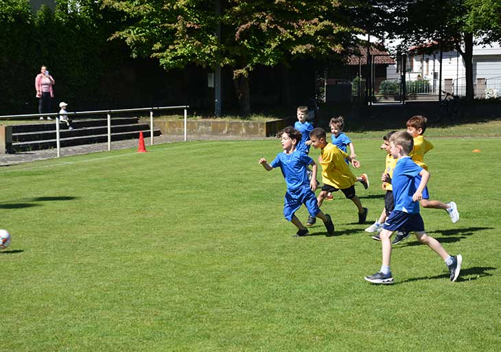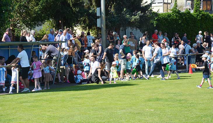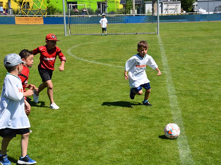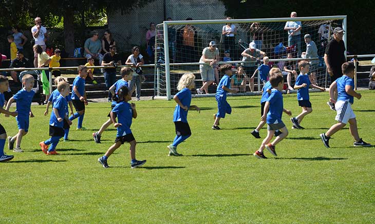 Ciro-Sacco-Gedächtnisturnier für Kindergartenkinder – rund 300 Mädchen und Jungen rennen dem Ball hinterher- Cheerleadergruppen feuern die Spieler an