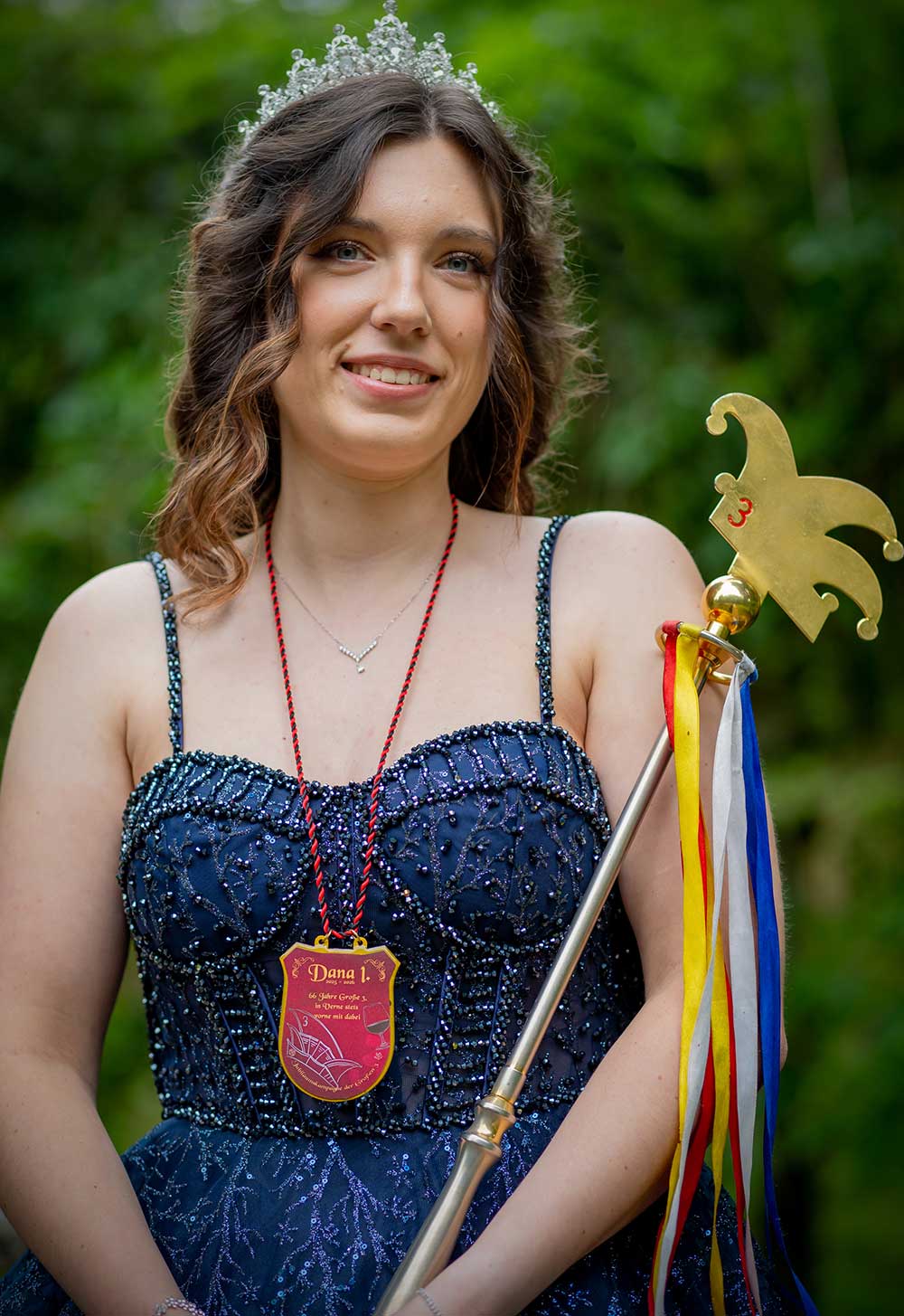 Die Berufung zur Prinzessin kam überraschend: Dana wurde unter dem Vorwand „Ich muss mal mit dir reden“ von Elisa – einer Nachwuchsleiterin aus der KjG – zu einem Gespräch gebeten. Doch vor der Tür warteten plötzlich Tim Peterl, Moritz Gerner und Benedikt Zengi vom Präsidium – mit Blumenstrauß und Sekt. Da war für Dana klar: „Ich bin dabei!“