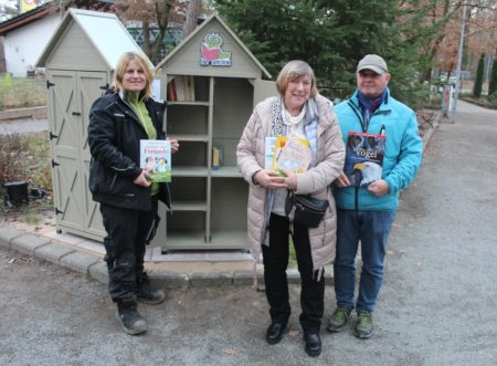 „Janosch“, „Zum Glück gibt‘s Freunde“ und viele weitere ausgewählte Kinderbücher stehen ab sofort frei zugänglich im Vogelpark, in der Nähe des Kiosks und direkt neben dem bereits bestehenden öffentlichen Bücherschrank für Erwachsene. Dieser wurde ebenfalls durch ein neues Modell ersetzt, da der alte deutlich in die Jahre gekommen war.