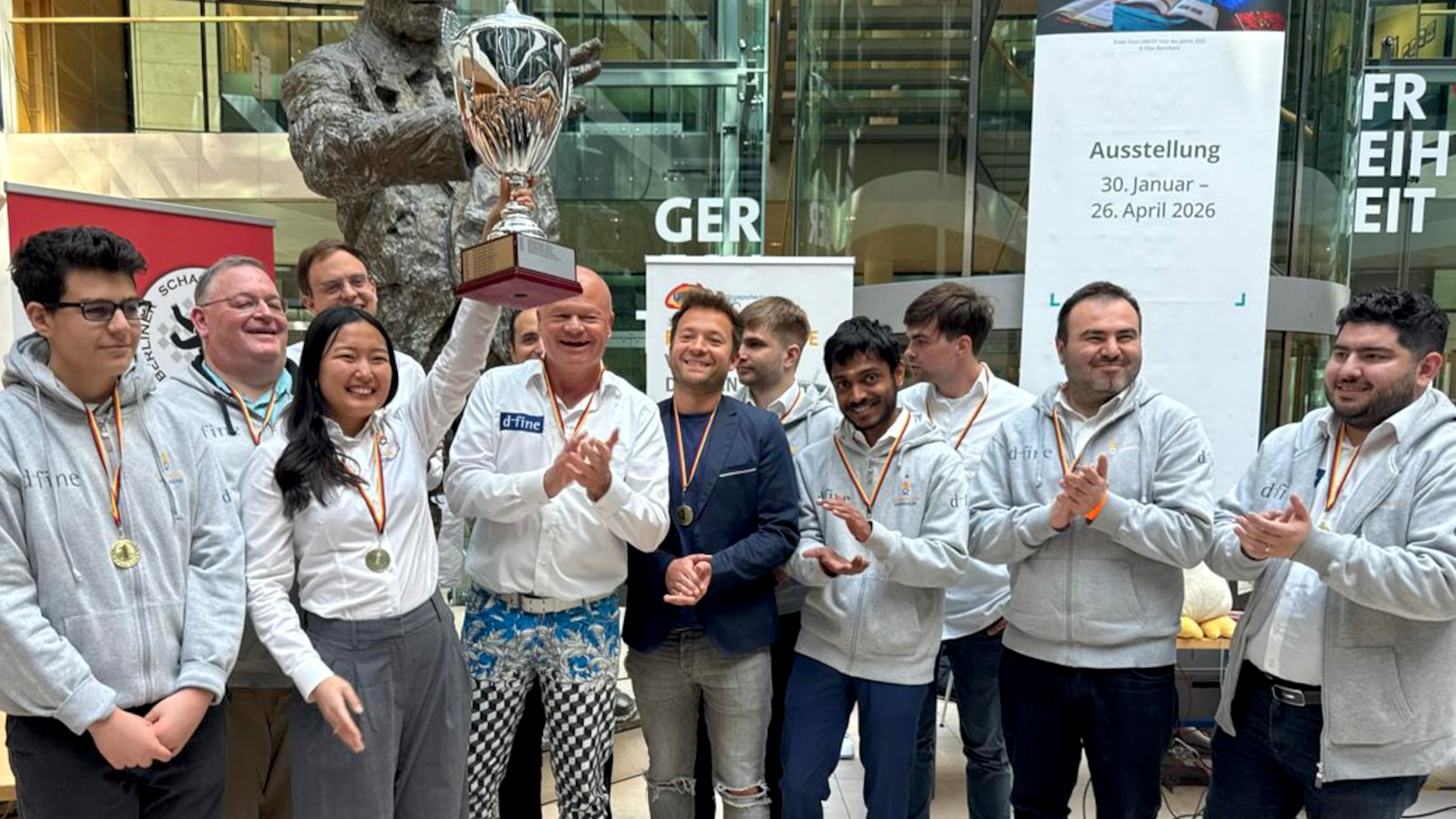Viernheim (SC) – Der SC Viernheim ist Deutscher Meister 2026. Mit 30:0 Mannschaftspunkten und einem Rekordvorsprung von sieben Punkten vor der Konkurrenz beendeten die Südhessen die Saison 2025/26 in der Schachbundesliga. Den zweiten Meistertitel in der gut 90-jährigen Clubgeschichte gewannen die Viernheimer jetzt beim dreitägigen Bundesliga-Finale im Willy-Brandt-Haus in Berlin, wo alle 16 Bundesligateams zusammenkamen, um vor mehr als 1000 Zuschauern vor Ort und einem Vielfachen davon im Internet die letzten drei Runden der Saison 2025/26 auszutragen.