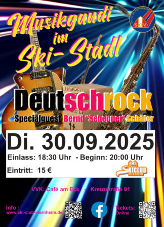 Es wird garantiert wieder ein großartiger Themenabend im Ski-Stadl wenn Bernd „Schepper“ Schäfer das Publikum mit den bekanntesten Deutschrocksongs im Stadl sein Publikum begeistert.