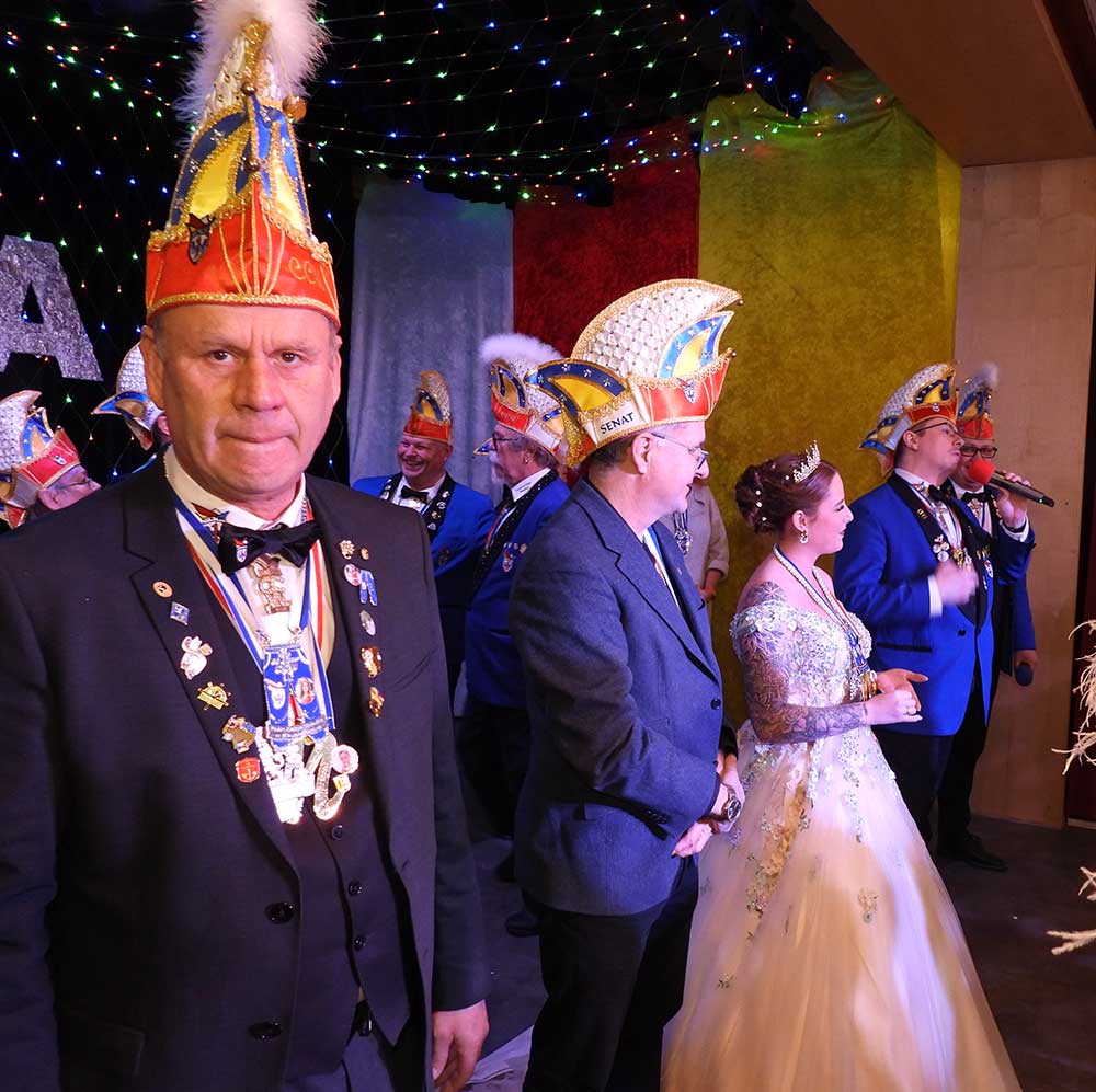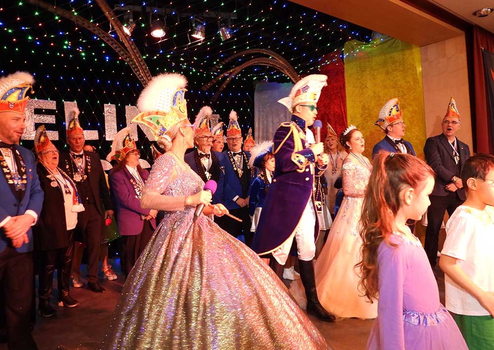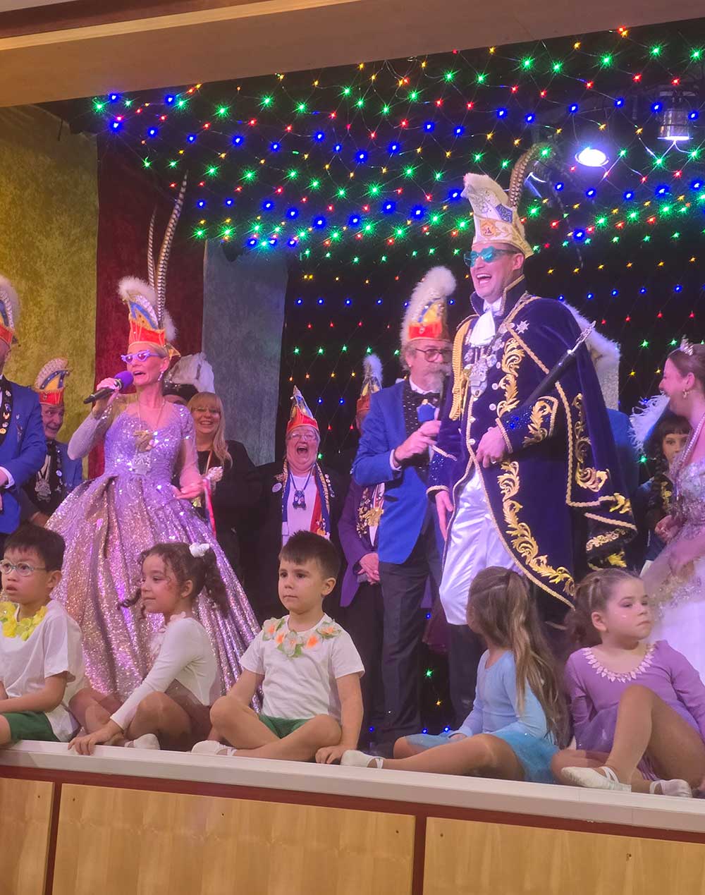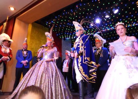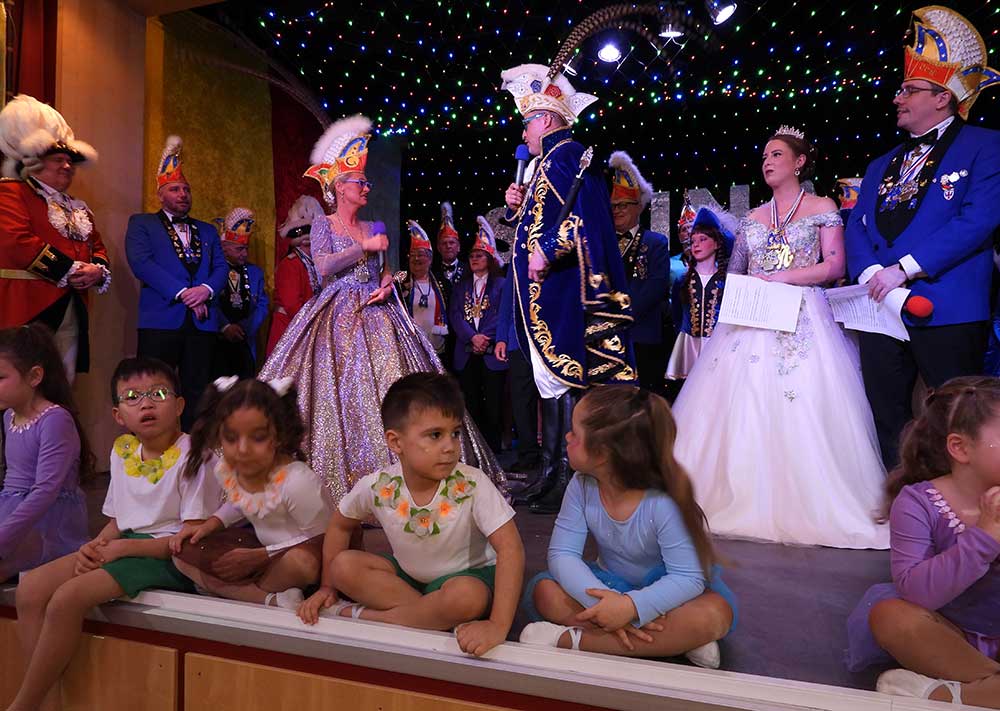 Die Jugendgarde präsentierte ihren tollen Tanz und ernteten großen Applaus. Prinzessin Selina hatte nicht auf ihr Zepter aufgepasst, beziehungsweise auch ihr Elferat Dirk war dafür verantwortlich. Die Jugendgarde hatte es geschafft und ihr das Zepter wegzunehmen, um das Zepter zurück zu bekommen, musste natürlich verhandelt werden, mit was sie es bei der Garde auslöst, die haben jetzt einen Wunsch frei, was Selina für sie machen beziehungsweise bezahlen muss. Da auch der Elferat Dirk an dieser Aktion schuld war, musste er tanzen. Wir haben oben gute Laune, unten gute Laune, dazu holte er sich das Prinzenpaar mit auf die Bühne, die natürlich den Spaß mitmachten, letzlich tanzte fast der ganze Saal. Der „Sani vom Sand“begeisterte auch wieder mit seinen Geschichten aus dem Leben und erzählte vom Älterwerden.