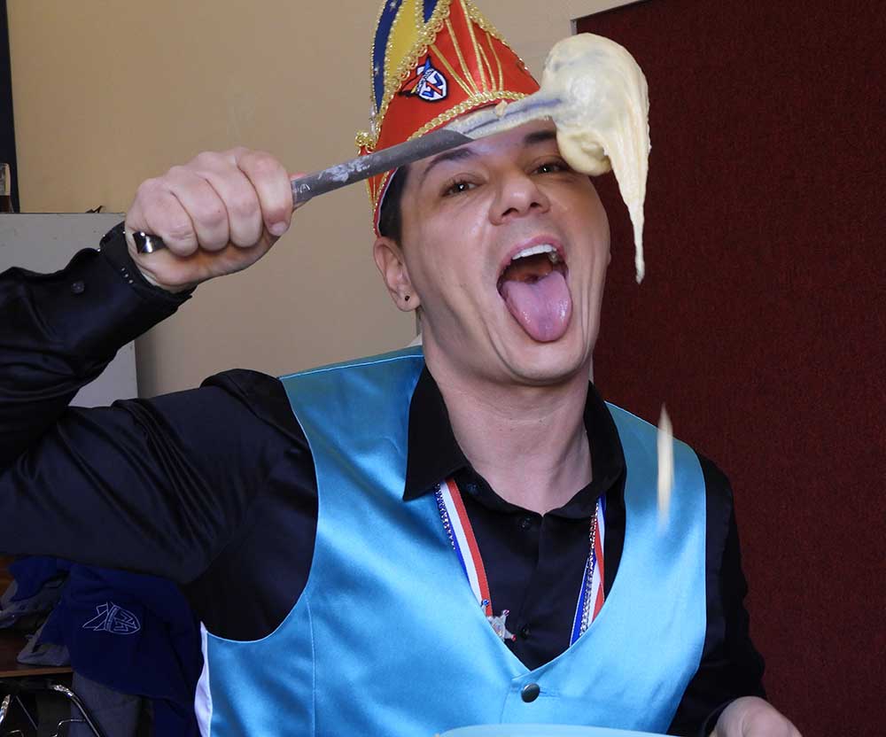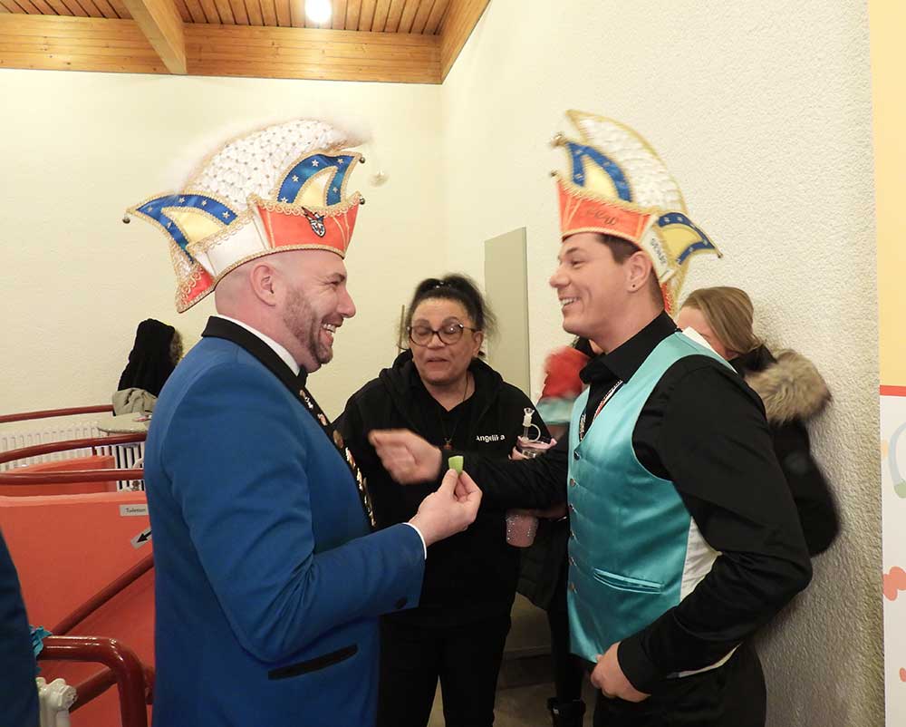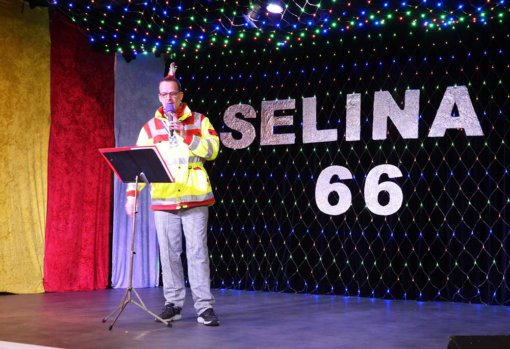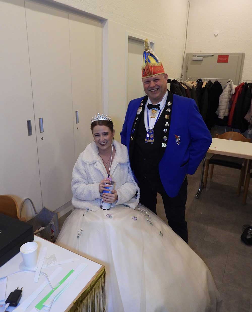 Die Jugendgarde präsentierte ihren tollen Tanz und ernteten großen Applaus. Prinzessin Selina hatte nicht auf ihr Zepter aufgepasst, beziehungsweise auch ihr Elferat Dirk war dafür verantwortlich. Die Jugendgarde hatte es geschafft und ihr das Zepter wegzunehmen, um das Zepter zurück zu bekommen, musste natürlich verhandelt werden, mit was sie es bei der Garde auslöst, die haben jetzt einen Wunsch frei, was Selina für sie machen beziehungsweise bezahlen muss. Da auch der Elferat Dirk an dieser Aktion schuld war, musste er tanzen. Wir haben oben gute Laune, unten gute Laune, dazu holte er sich das Prinzenpaar mit auf die Bühne, die natürlich den Spaß mitmachten, letzlich tanzte fast der ganze Saal. Der „Sani vom Sand“begeisterte auch wieder mit seinen Geschichten aus dem Leben und erzählte vom Älterwerden.