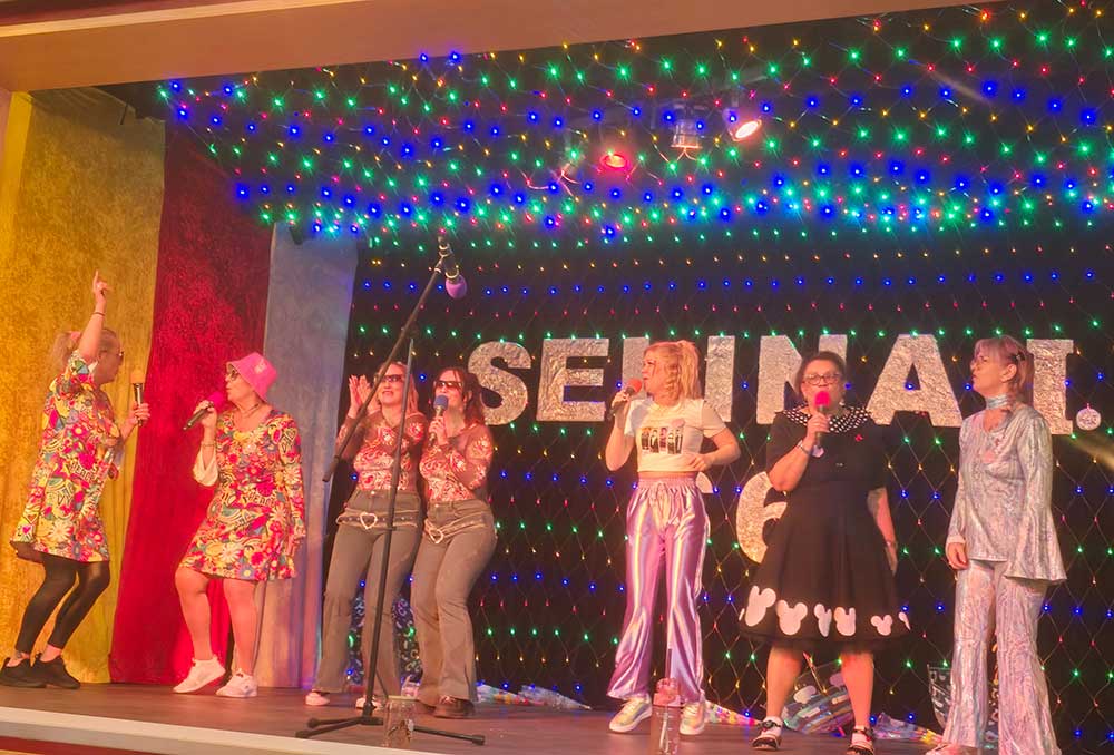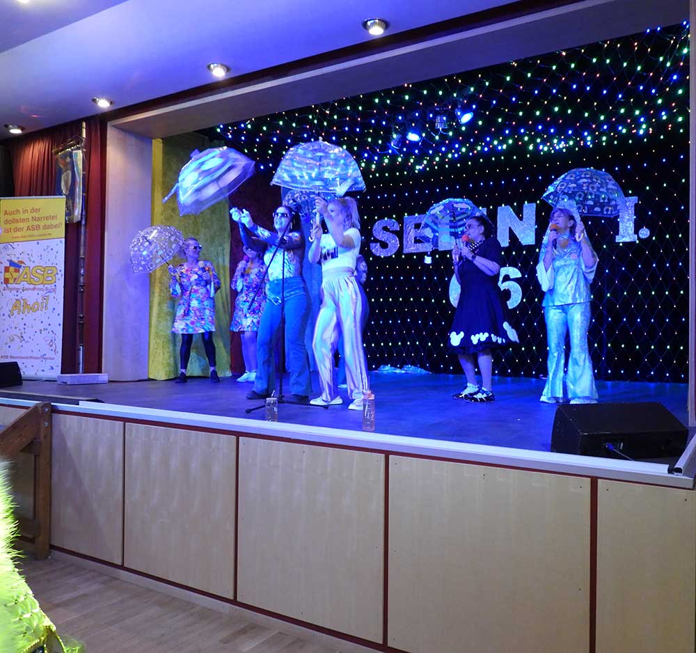 Der Auftakt machte die Minigarde und begeisterten gleich das Publikum. Im Anschluss trat die junge Marie mit ihrer Bütt auf die Bühne und erzählte aus ihrem Leben das erste Mal Urlaub ohne Mama mit ganz viel Heimweh. Dann gab es was für die Ohren mit den Malle-Mäusen, die Frauen rockten die Bühne.