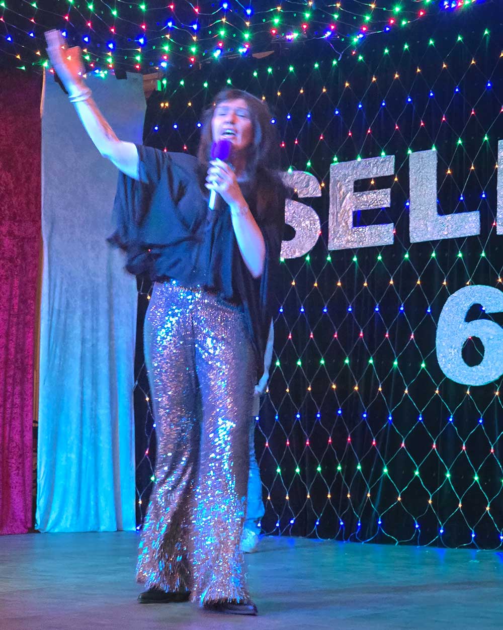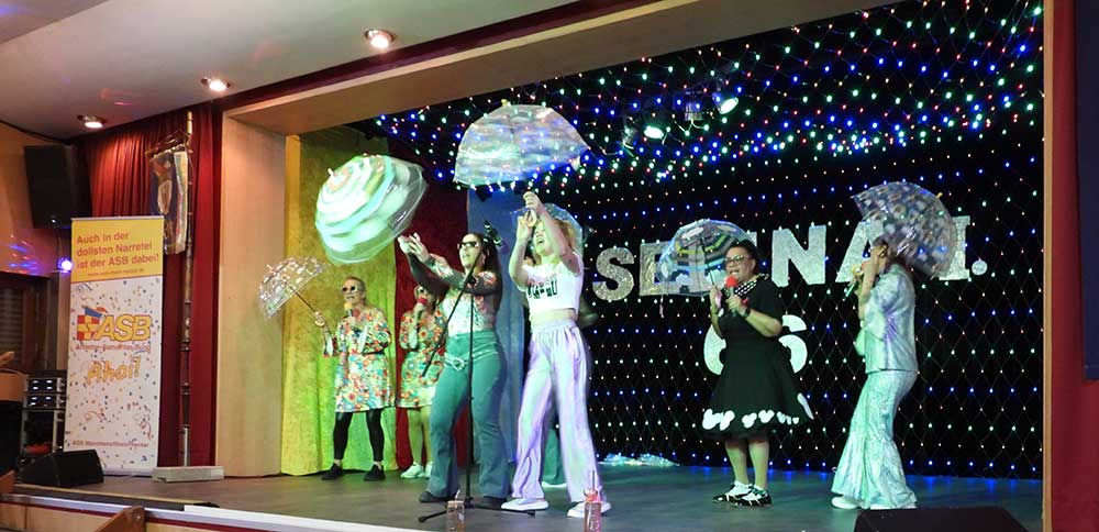 „Andrea Berg“ und „DJ Ötzi“ sorgten mit ihrem Gesang für gute Stimmung im Saal. Danach kam die Juniorengarde mit ihrem tollen Tanz. Übrigens am Samstag belegten sie beim Gardeball den ersten Platz. Die bekannte Angelika Remmele mit ihrer Bütt hatte natürlich wieder die Lacher auf ihrer Seite, diesmal berichtete sie von der Reha in der sie wegen ihrem Rücken war und natürlich lief dort wieder alles anders, wie normal.