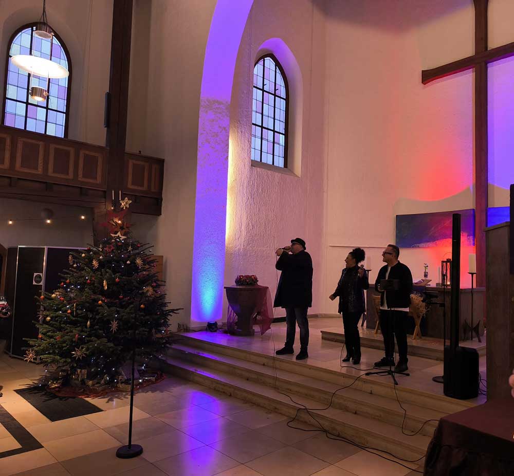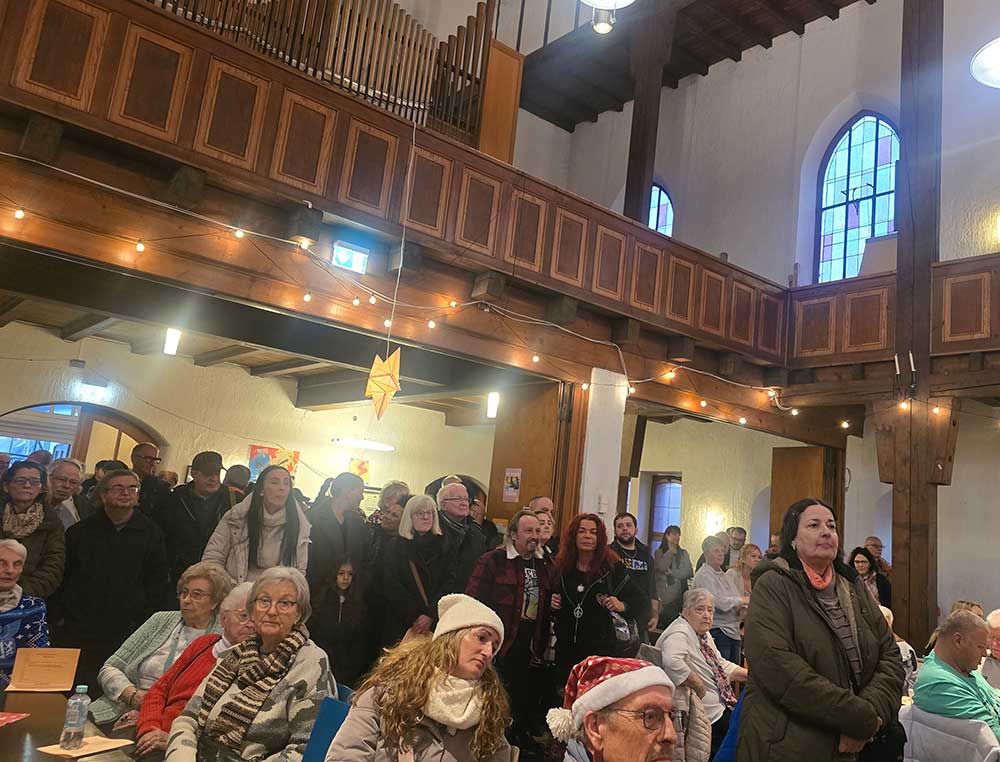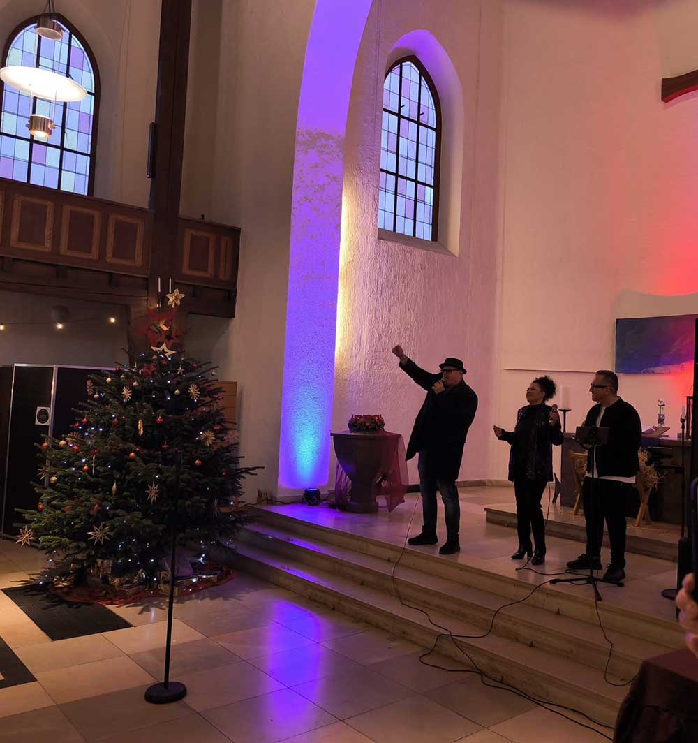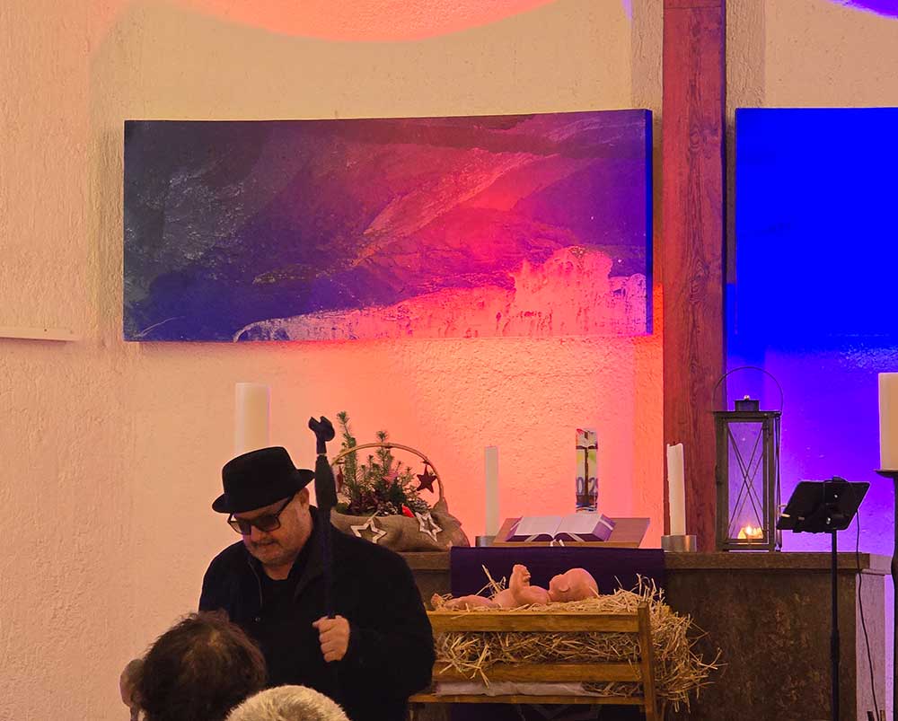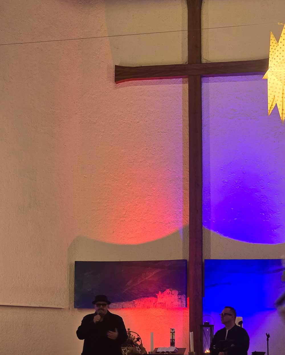 Mannheim (Vo) – Der Förderverein Paulus Kirche e.V. hatte alle Generationen für Sonntag 14. Dezember 2025 zum Weihnachtssingen eingeladen, der Schirmherr war Rolf Stahlhofen, er ist ein bekannter deutscher Sänger und sang mit Allen gemeinsam wunderschöne, bekannte Lieder. Naro & Friends moderierte die Veranstaltung an diesem wunderschönen Advenstsnachmittag in einem schönen Ambiente und sang mit Allen gemeinsam Weihnachtslieder. Naro schaffte es noch mehrere befreundete und bekannte Künstler für diesen Nachmittag zu gewinnen. Zum Auftakt sang Naro mit den zahlreich erschienen Besuchern, er freute sich dabei zu sein, dies war ein großer Applaus für die Pauluskirche wert.