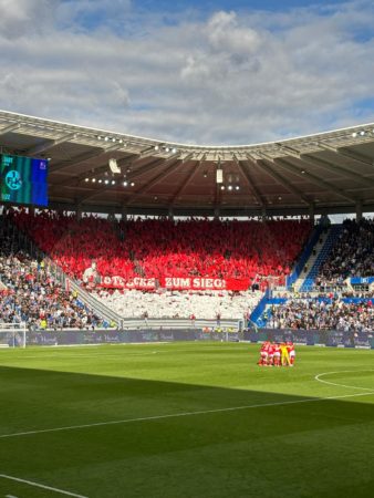 Kaiserslautern (C.Wunderle) – Derbysiege schmecken bekanntlich besonders süß. Als der in der Schlussphase eingewechselte FCK-Kapitän Marlon Ritter in der 93. Minute zur 3:2-Führung traf, explodierte der Gästeblock förmlich – Ekstase und Emotionen pur bei den rund 5000 mitgereisten Betze-Fans. In einem packenden Duell bei einem bis zum Ende offenen Schlagabtausch hatten die Gäste aus der Pfalz das glücklichere Ende und entführten im Südwestderby beim bis dato punktgleichen Karlsruher SC die erhofften drei Punkte – und machten FCK-Legende Hans-Peter Briegel anlässlich seines 70. Geburtstages ein nachträgliches Geburtstagsgeschenk.