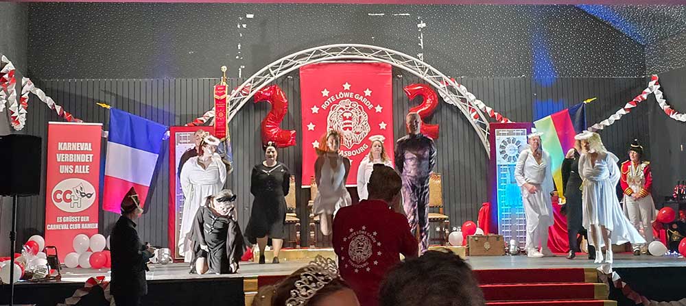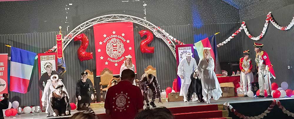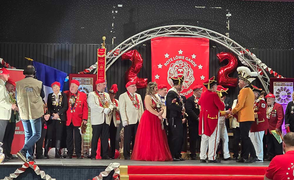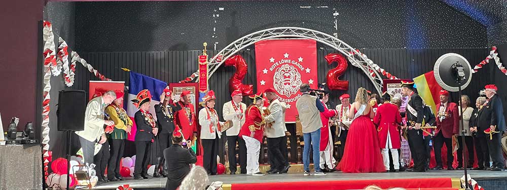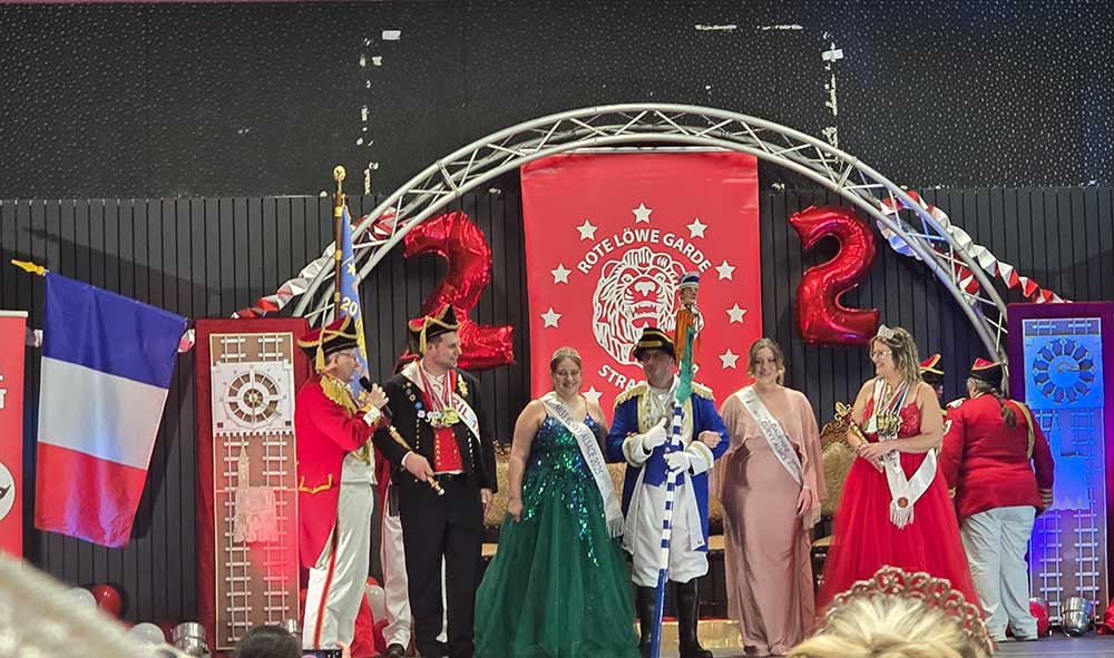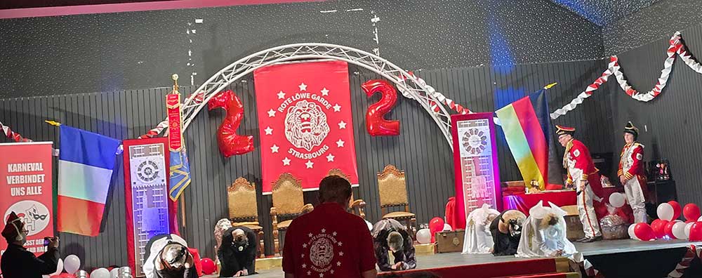 Strasbourg (Vo) – Karneval bei der Roten Löwen Garde in Straßburg, am Samstagabend (21.2.26), beste Stimmung, super Programm. Es startete mit dem Einmarsch der Garden und der Roten Löwen Garde. Gleich nach der kurzen Begrüßung von Patrick Ohl, wurde gemeinsam die Nationalhymne gesungen.