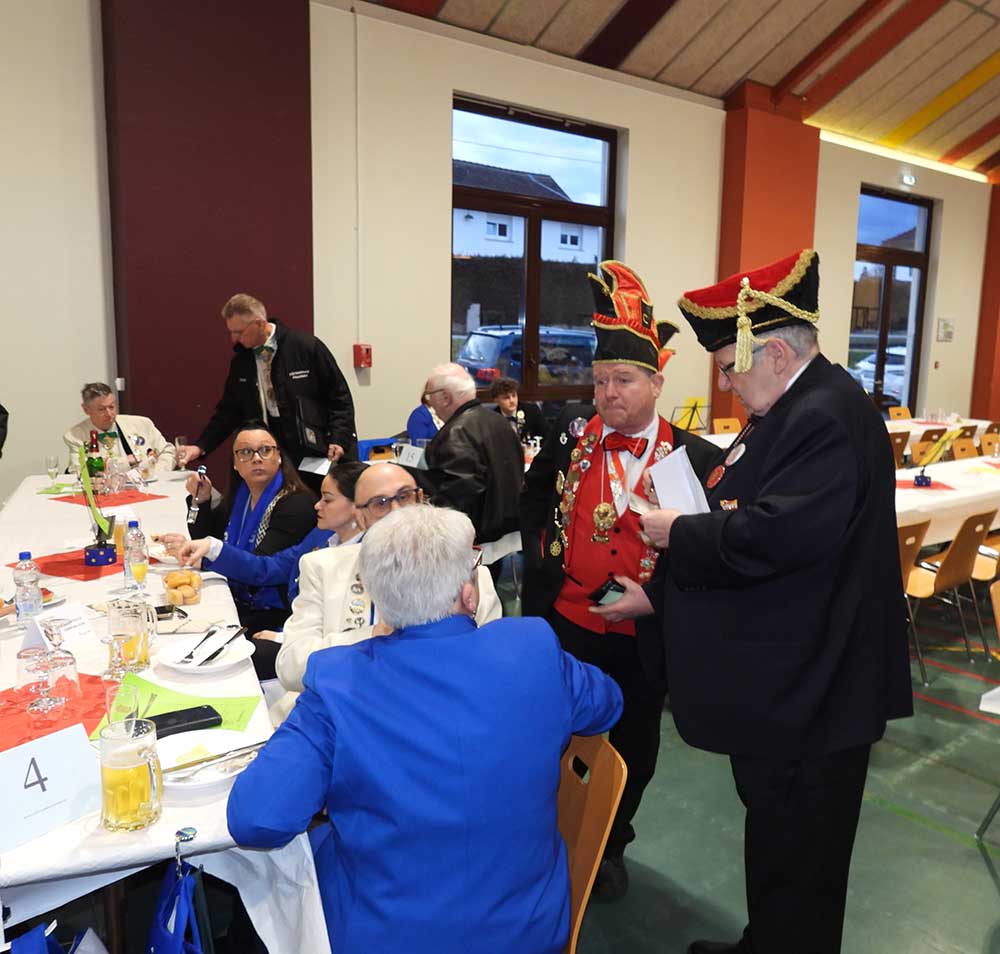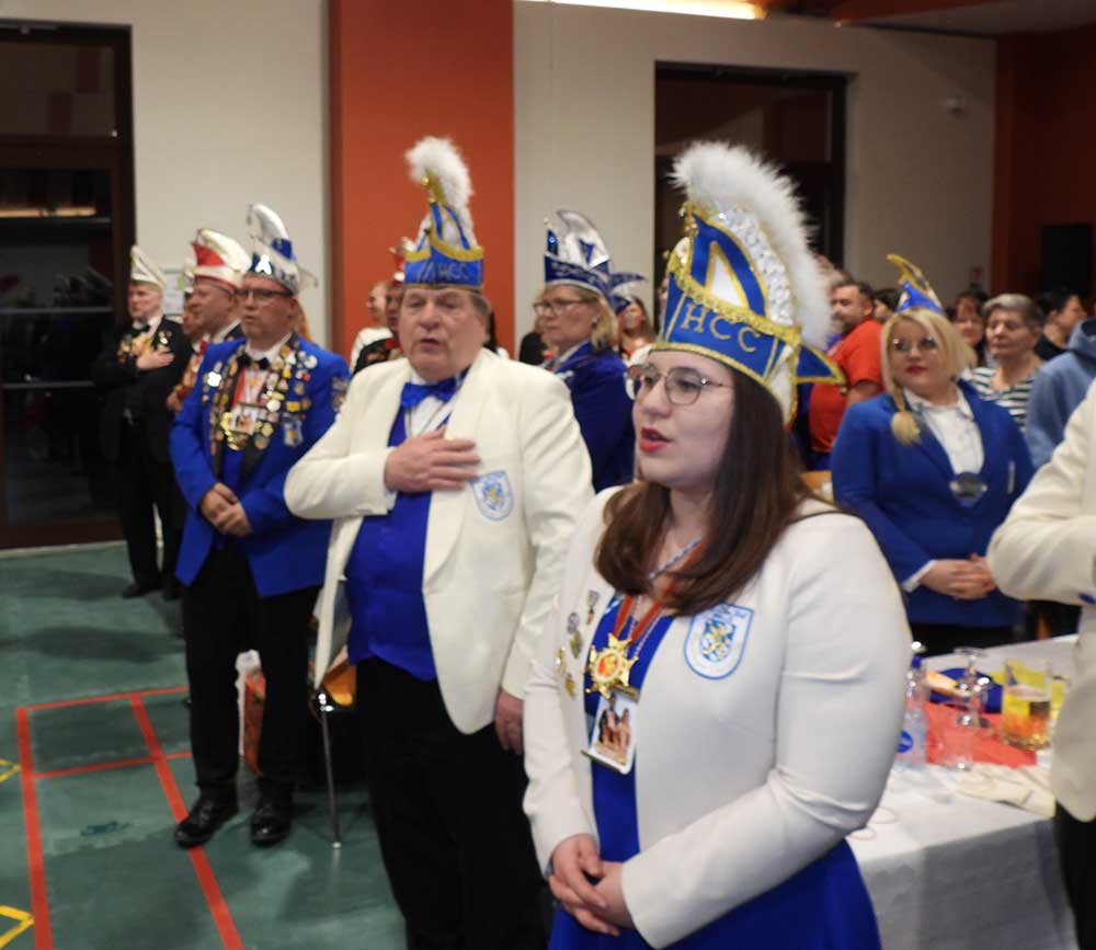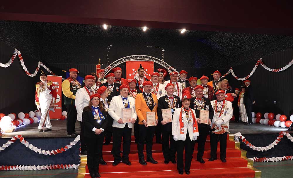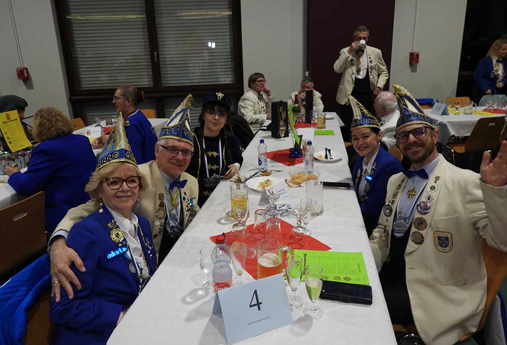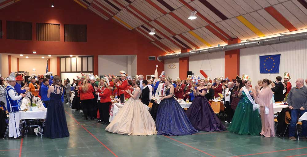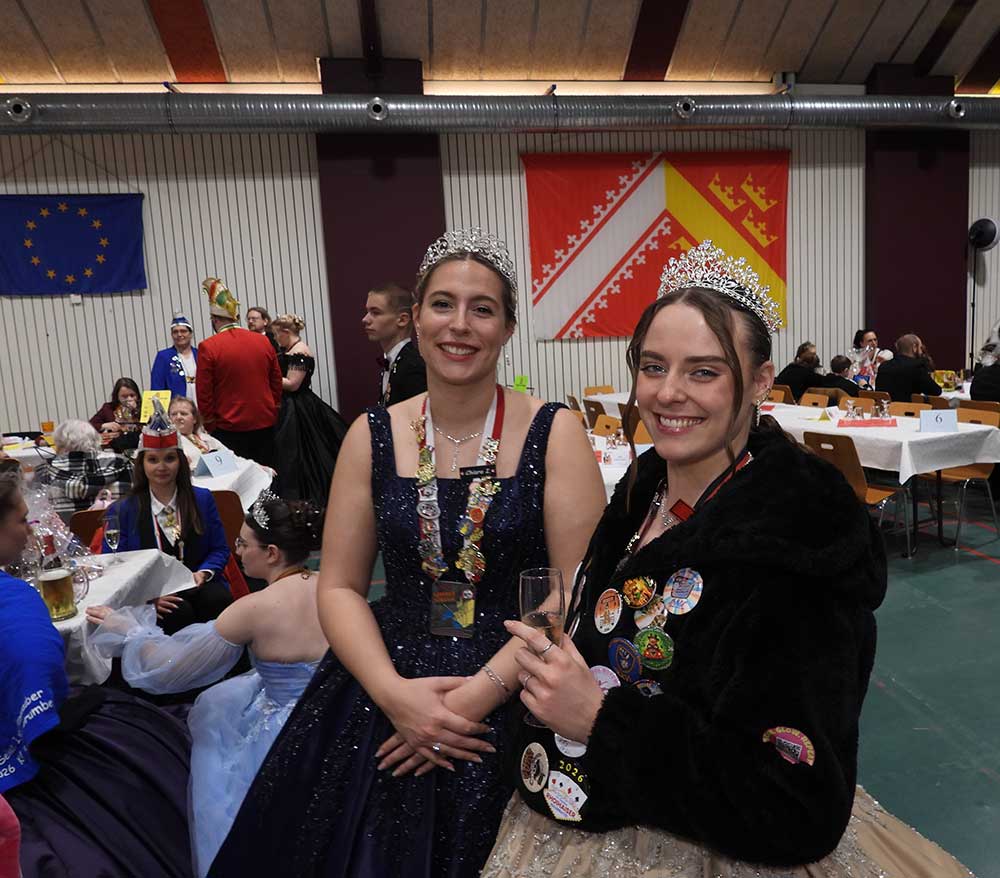 Drei Tanzmariechen vom Karnevalclub Blau – Weiß aus Heidelberg waren mit dabei und präsentierten ihre Tänze. Die Storchengarde aus Malsch begeisterte das Publikum mit ihrem Tanz. Karneval verbindet und es werden Freundschaften gepflegt und das schon seit 22 Jahren, solange gibt es die Rote Löwen Garde. Der weit gereiste Verein kam aus Hameln, der Karnevalclub CCH, schon seit Jahrzehnten sind beide Vereine wie eine große Familie, da merkt man Fasching verbindet. Ehrenmitglieder wurden begrüßt und neue Ehrenmitglieder wurden gebührend in die Runde aufgenommen. Mit eines der Höhepunkte war, dass alle Prinzessinnen und Prinzenpaare gemeinsam auf die Bühne kamen, die Jahresorden wurden getauscht, die Mottos letztmalig verkündet. Für die deutschen Prinzessinen und Prinzen war es noch ein toller Abschluss, da ja in Deutschland die Kampagne 2025/26 schon seit Aschermittwoch beendet ist.