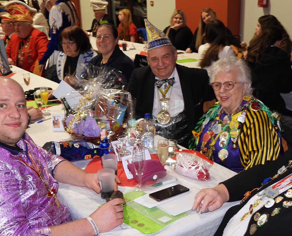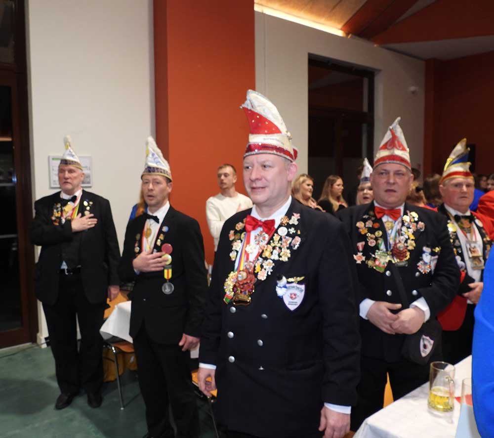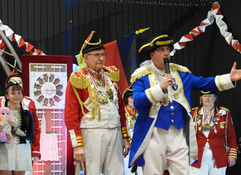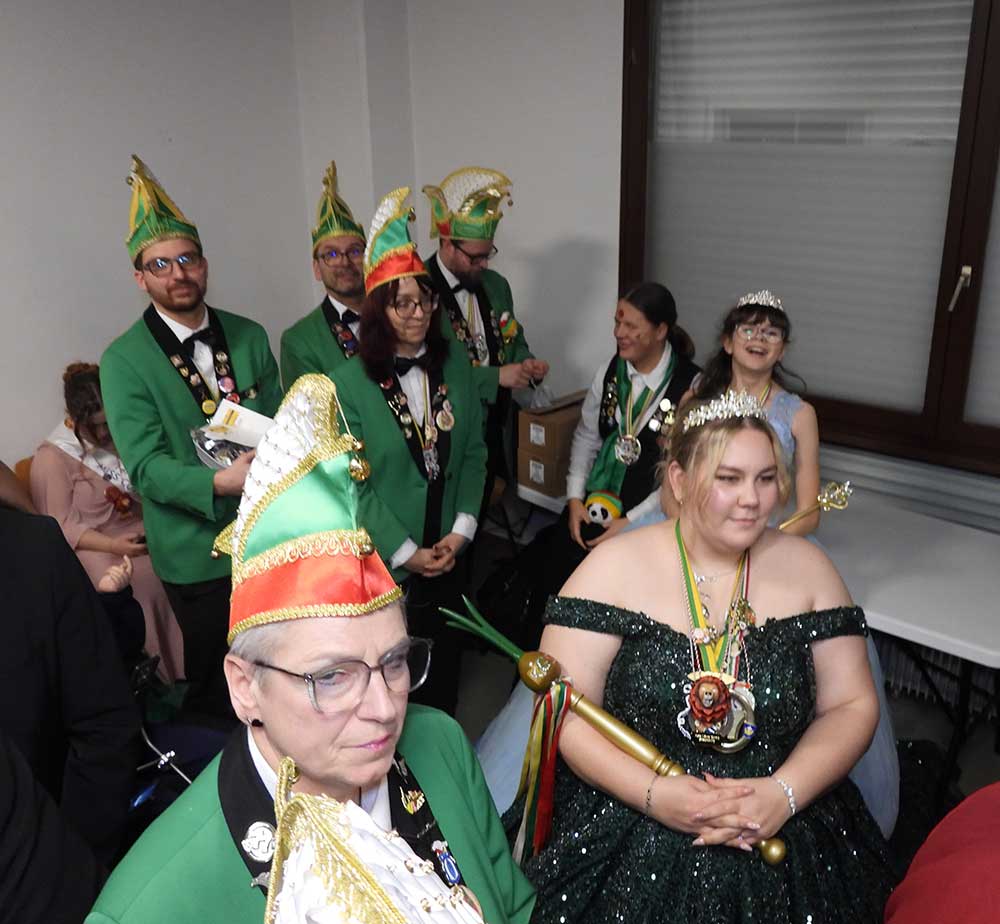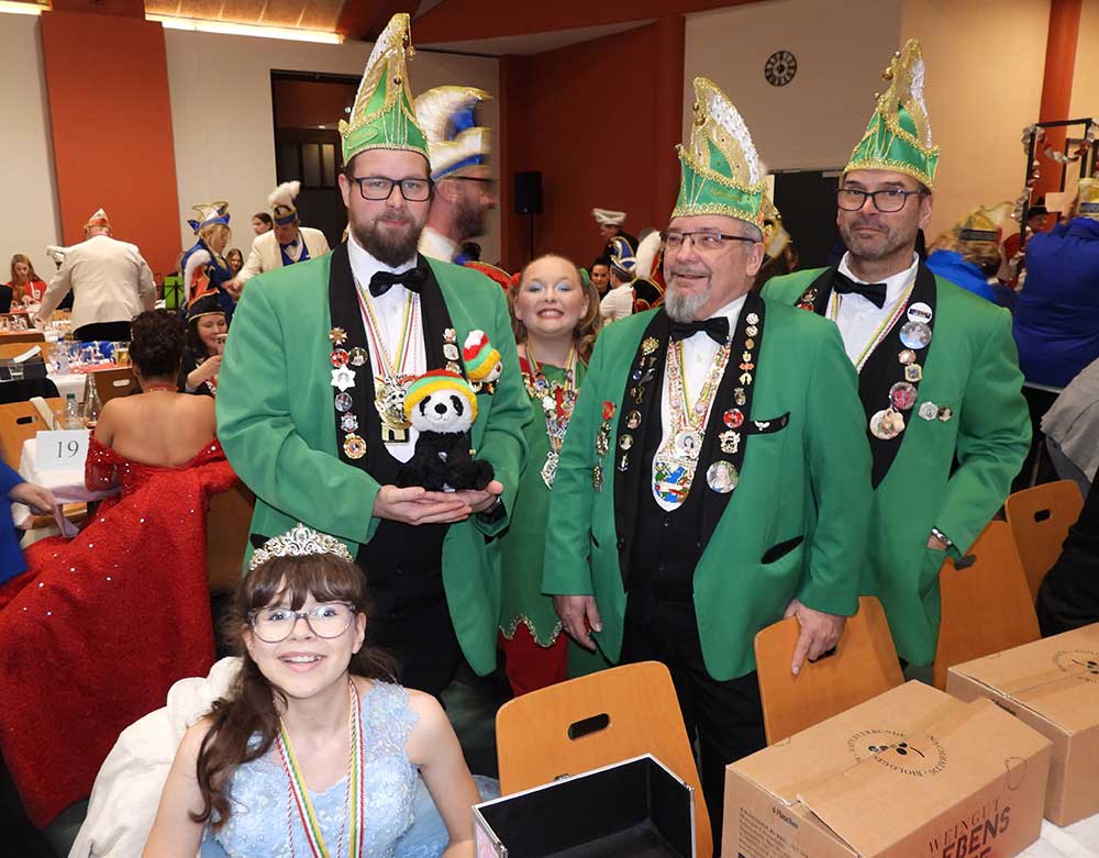 Drei Tanzmariechen vom Karnevalclub Blau – Weiß aus Heidelberg waren mit dabei und präsentierten ihre Tänze. Die Storchengarde aus Malsch begeisterte das Publikum mit ihrem Tanz. Karneval verbindet und es werden Freundschaften gepflegt und das schon seit 22 Jahren, solange gibt es die Rote Löwen Garde. Der weit gereiste Verein kam aus Hameln, der Karnevalclub CCH, schon seit Jahrzehnten sind beide Vereine wie eine große Familie, da merkt man Fasching verbindet. Ehrenmitglieder wurden begrüßt und neue Ehrenmitglieder wurden gebührend in die Runde aufgenommen. Mit eines der Höhepunkte war, dass alle Prinzessinnen und Prinzenpaare gemeinsam auf die Bühne kamen, die Jahresorden wurden getauscht, die Mottos letztmalig verkündet. Für die deutschen Prinzessinen und Prinzen war es noch ein toller Abschluss, da ja in Deutschland die Kampagne 2025/26 schon seit Aschermittwoch beendet ist.