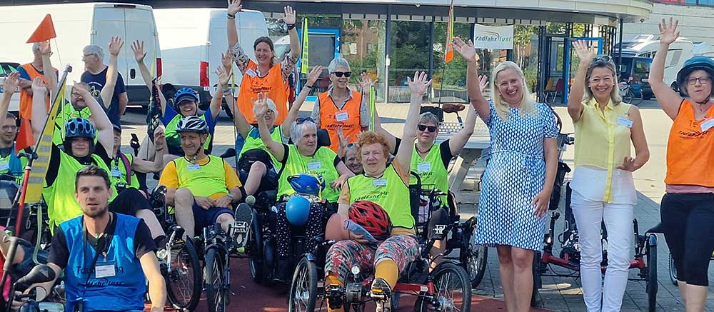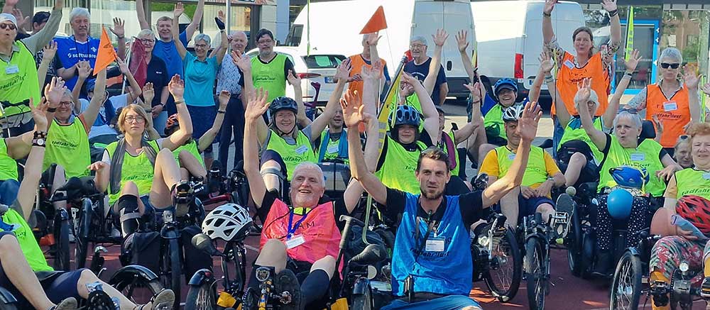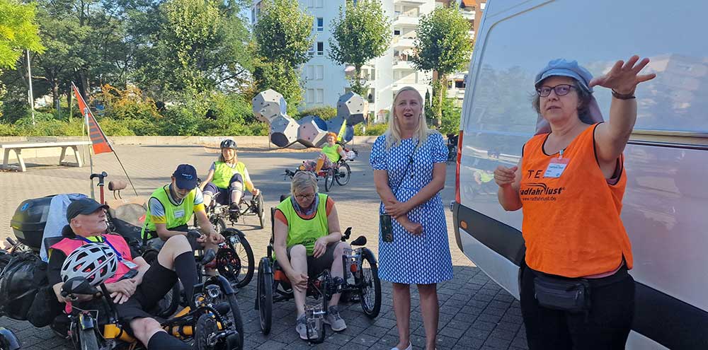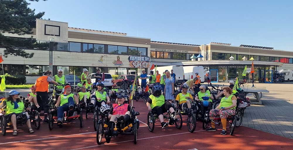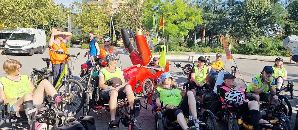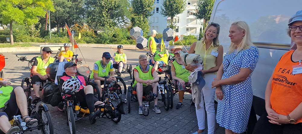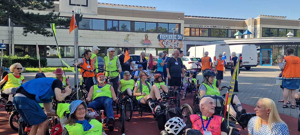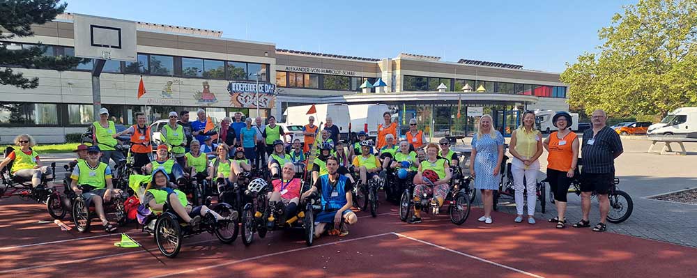 Alle freuen sich, das die radfahrlust® nach der Coronapause endlich wieder zurück ist. Neurologisch bedingte Gleichgewichtsprobleme bis hin zu Lähmungen machen es den an Multipler Sklerose Erkrankten nicht möglich ein normales Fahrrad zu fahren. Seit vielen Jahren gibt es Spezialfahrräder, die den Betroffenen die Möglichkeit geben, sich mit Rädern wieder zu bewegen. Die Dreiräder mit niedriger Sitzposition bieten die besten Vorraussetzungen, um nicht umzufallen.