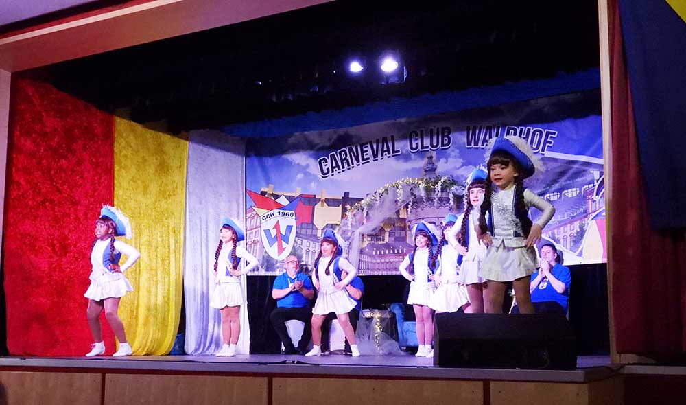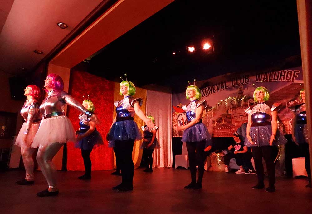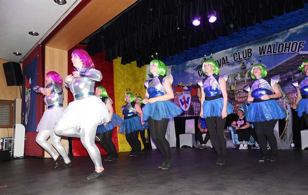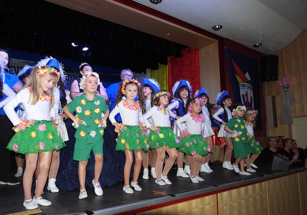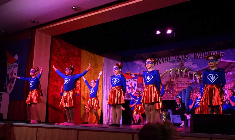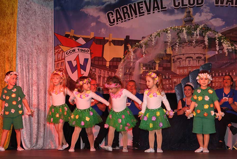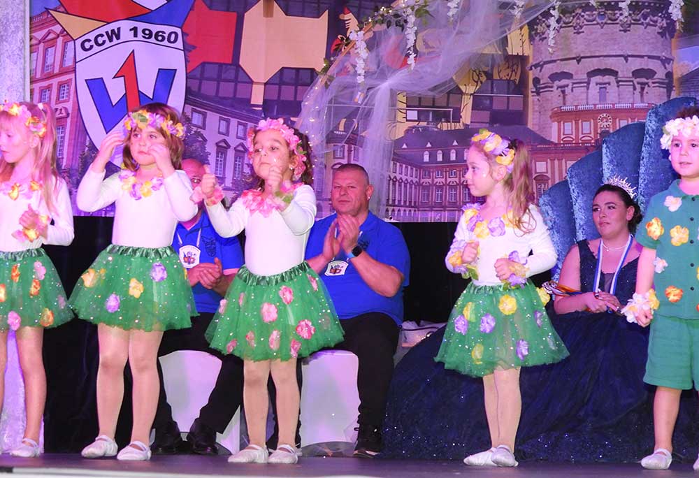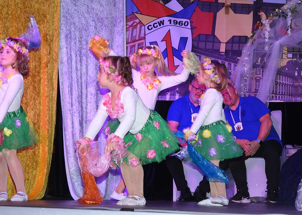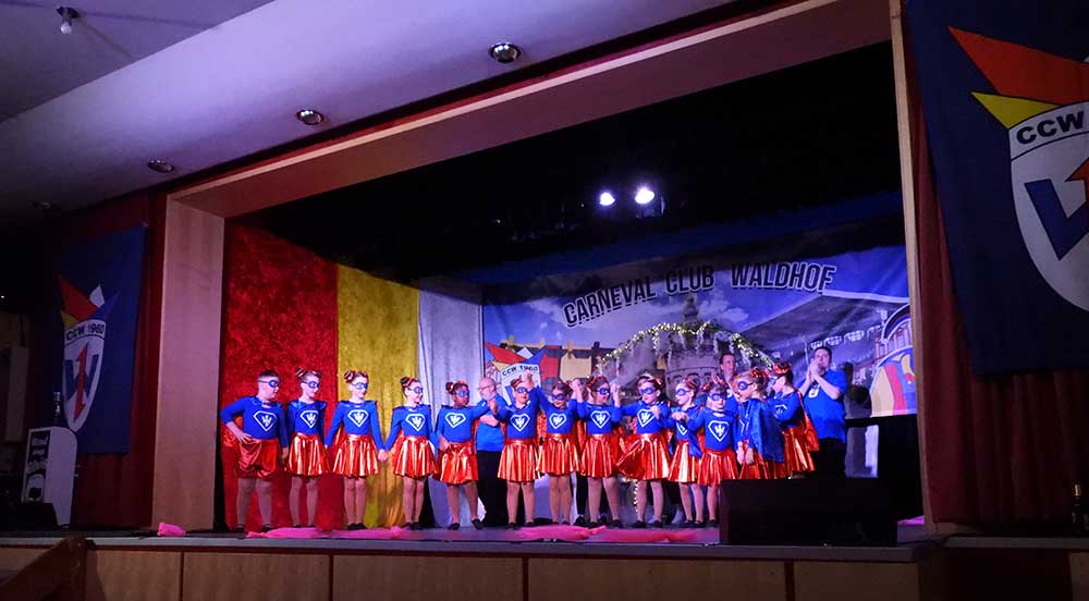 Und schon ging es mit dem abwechslungsreichen Programm los, unter dem Motto „Inselfieber“ präsentierten die Kleinsten ihren Showtanz mit tollen Kostümen. Die CCW`ler hatten es wieder geschafft ein tolles Programm auf die Beine zu stellen, so das für jeden was dabei war, ein bunter Mix fürs Auge und Gehör. Marie Hofmann erzählte in der Bütt aus ihrem jungen Leben. Mit bekannten Hits von Elvis begeisterte Wout Willems die Gäste, er musste so manche Zugabe singen. Die Malle Mäuse vom CCW rockten wie immer die Bühne mit ihren bekannten Hits. die zum mitsingen einluden. Tobias Balz als Bauer Sepp mit seiner Bütt vom Bauernhof und einer Taxifahrt hatte er die Lacher auf seiner Seite, als Taxifahrer holte er sich Wout Willems aus dem Publikum auf die Bühne. Die Garden begeisterten mit ihren Garde-Show und Marschtänzen. Einen tollen Hip Hop Tanz präsentierten die Mädels von de CHANTAL MILLER ACADEMY. Miss Caroline sorgte mit ihrem Gesang für große Begeisterung, auch sie musste natürlich eine Zugabe singen. Als Comedy und Travestikünstler betrat Markus Beisel als Celine Bouvier in einem goldenen Kleid und hohen High Heels die Bühne und babbelte wie ihr die Schnutt gewachsen ist. Wunderschöne Kostüme und ein toller Tanz präsentierten die Manylegs unter dem Motto„Auf dem Mars ist die Hölle los“. Nochmals tolle Comedy präsentierte Rene Weintz. Zum Schluss gab es nochmals was fürs Auge, als die Aktivengarde ihren Showtanz „Aus Rot wird Wild präsentierte“.