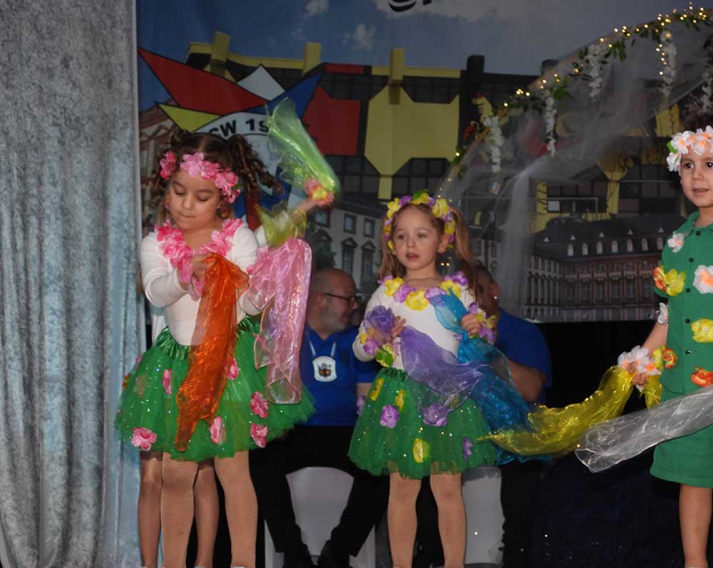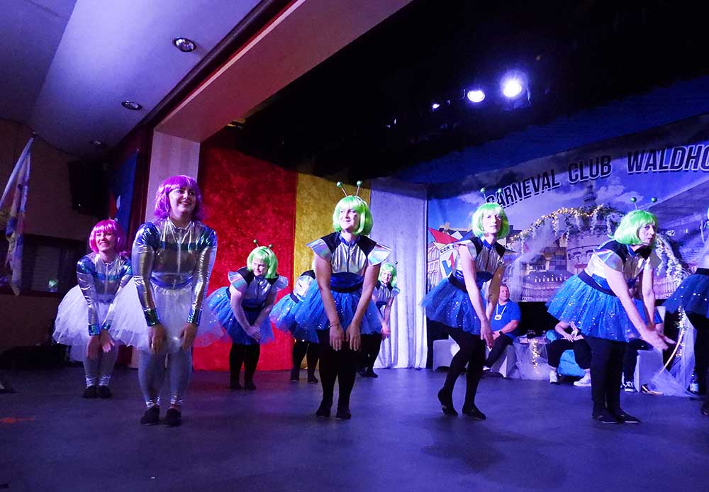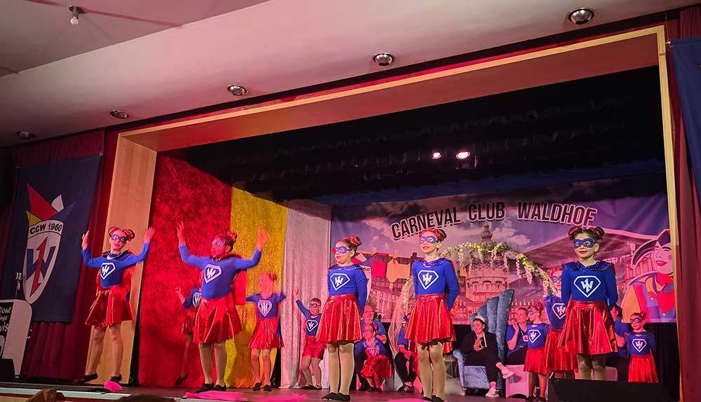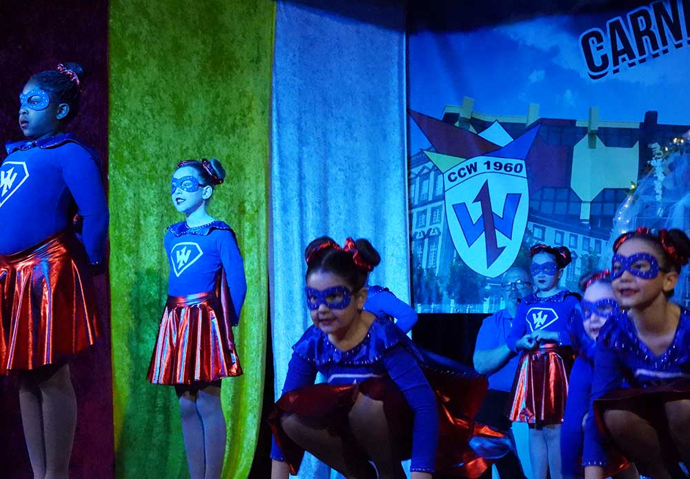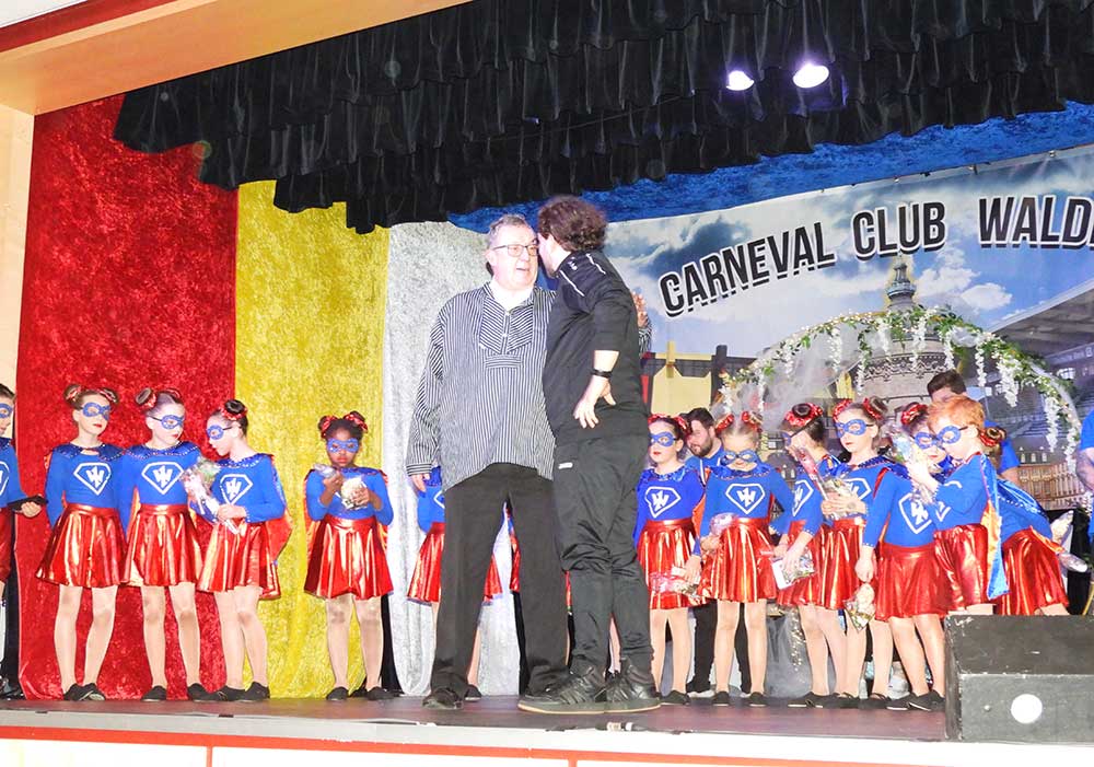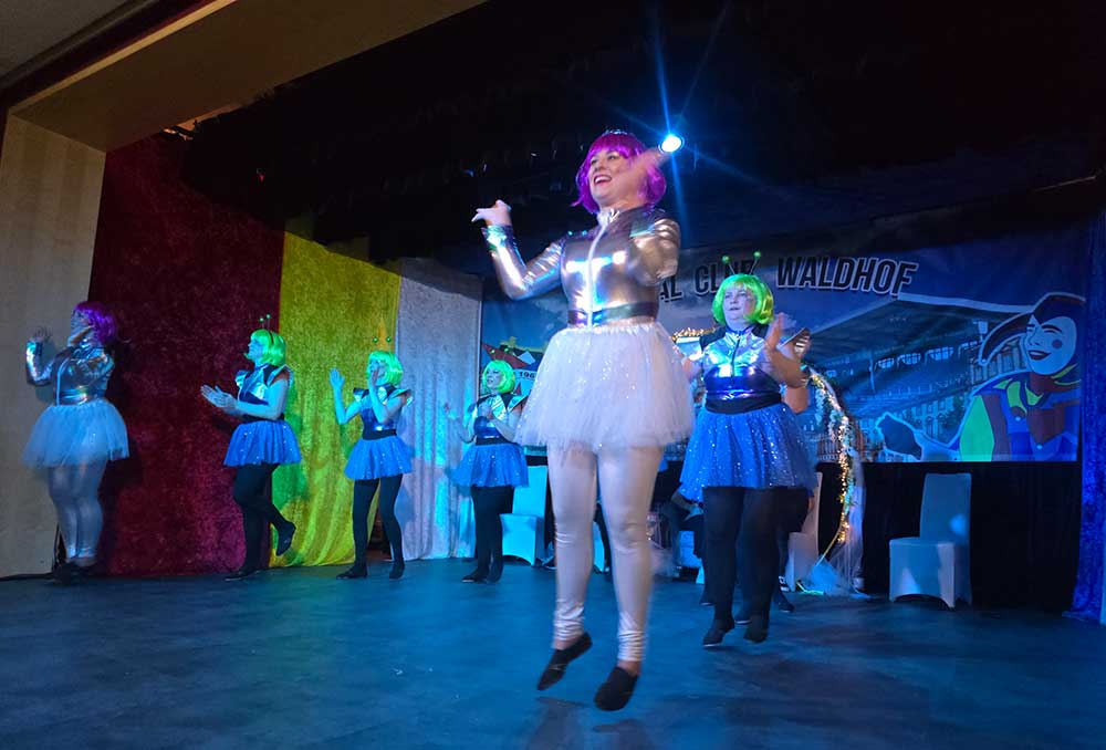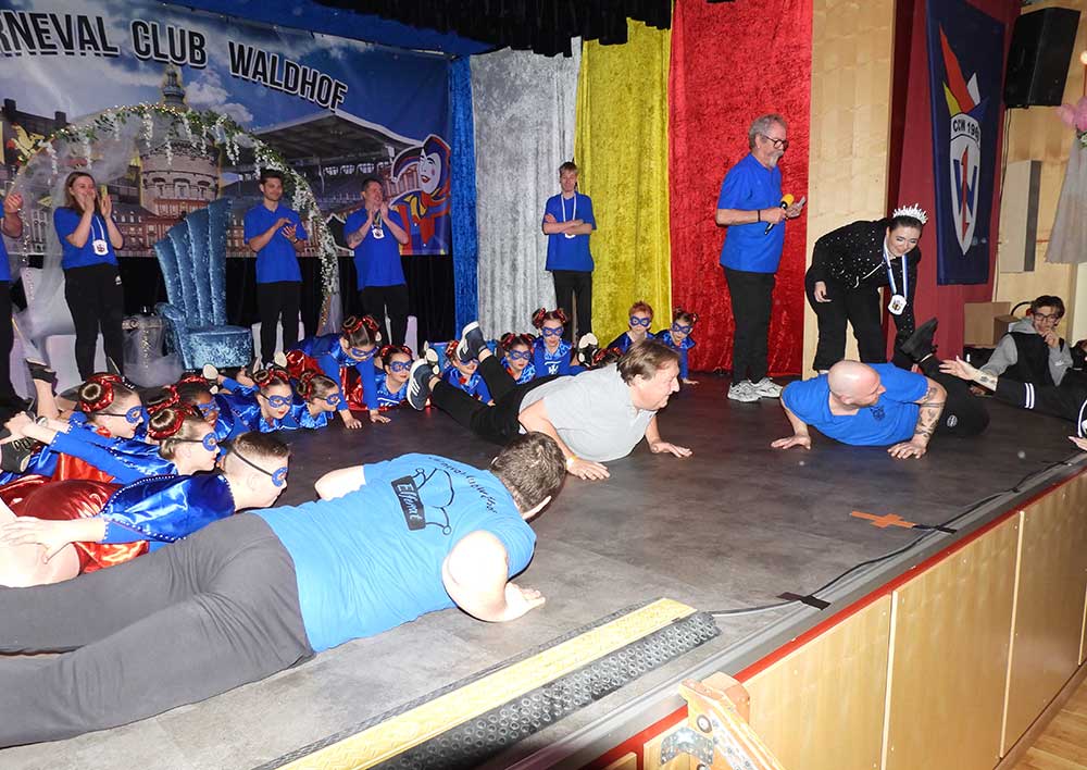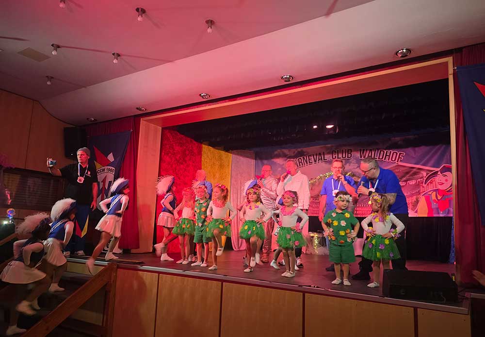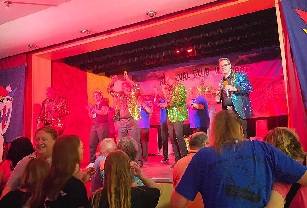 Und schon ging es mit dem abwechslungsreichen Programm los, unter dem Motto „Inselfieber“ präsentierten die Kleinsten ihren Showtanz mit tollen Kostümen. Die CCW`ler hatten es wieder geschafft ein tolles Programm auf die Beine zu stellen, so das für jeden was dabei war, ein bunter Mix fürs Auge und Gehör. Marie Hofmann erzählte in der Bütt aus ihrem jungen Leben. Mit bekannten Hits von Elvis begeisterte Wout Willems die Gäste, er musste so manche Zugabe singen. Die Malle Mäuse vom CCW rockten wie immer die Bühne mit ihren bekannten Hits. die zum mitsingen einluden. Tobias Balz als Bauer Sepp mit seiner Bütt vom Bauernhof und einer Taxifahrt hatte er die Lacher auf seiner Seite, als Taxifahrer holte er sich Wout Willems aus dem Publikum auf die Bühne. Die Garden begeisterten mit ihren Garde-Show und Marschtänzen. Einen tollen Hip Hop Tanz präsentierten die Mädels von de CHANTAL MILLER ACADEMY. Miss Caroline sorgte mit ihrem Gesang für große Begeisterung, auch sie musste natürlich eine Zugabe singen. Als Comedy und Travestikünstler betrat Markus Beisel als Celine Bouvier in einem goldenen Kleid und hohen High Heels die Bühne und babbelte wie ihr die Schnutt gewachsen ist. Wunderschöne Kostüme und ein toller Tanz präsentierten die Manylegs unter dem Motto„Auf dem Mars ist die Hölle los“. Nochmals tolle Comedy präsentierte Rene Weintz. Zum Schluss gab es nochmals was fürs Auge, als die Aktivengarde ihren Showtanz „Aus Rot wird Wild präsentierte“.