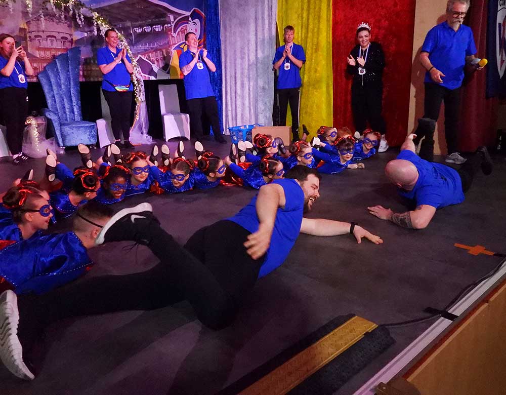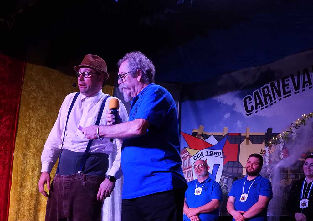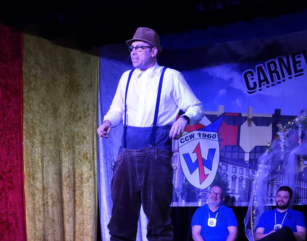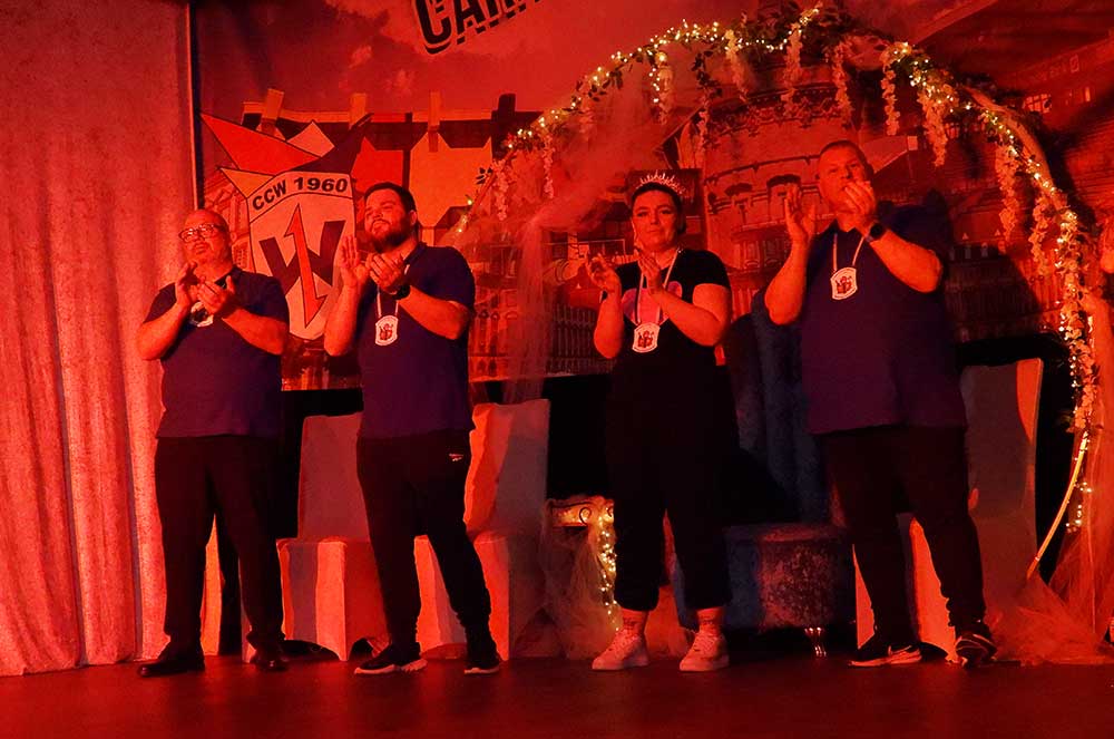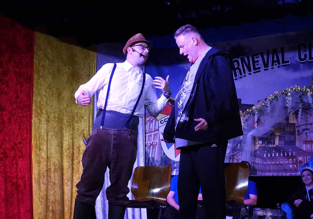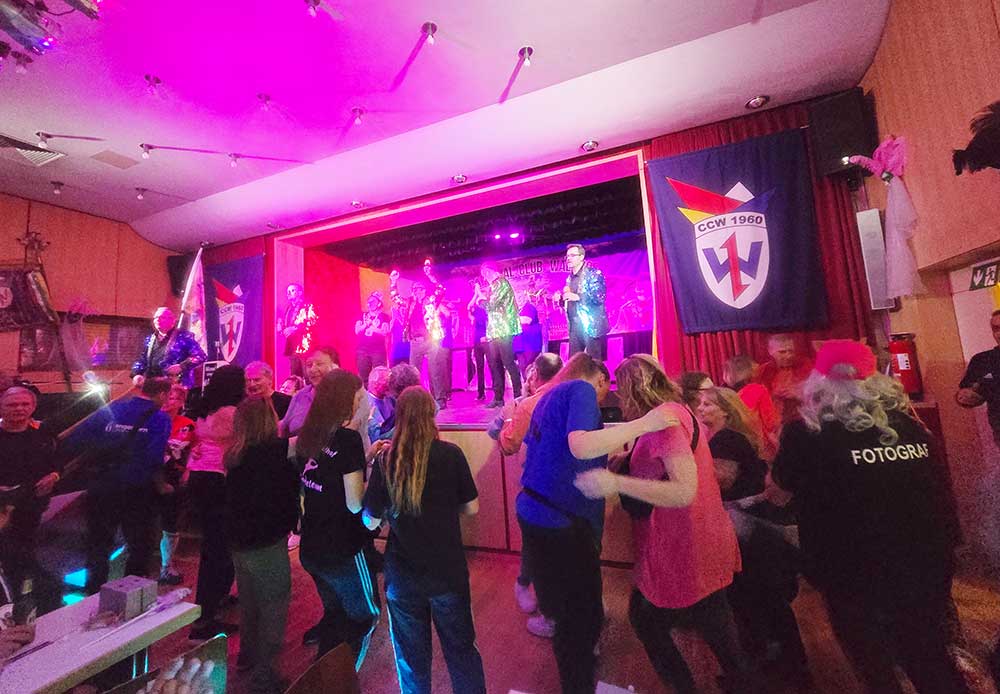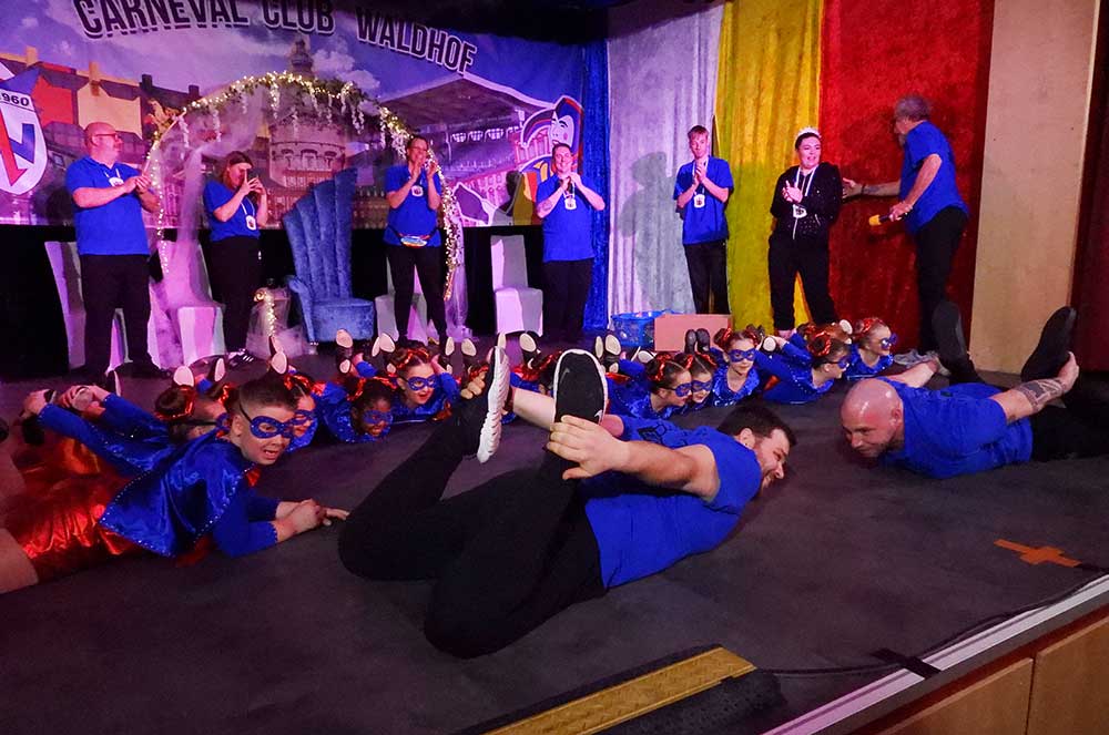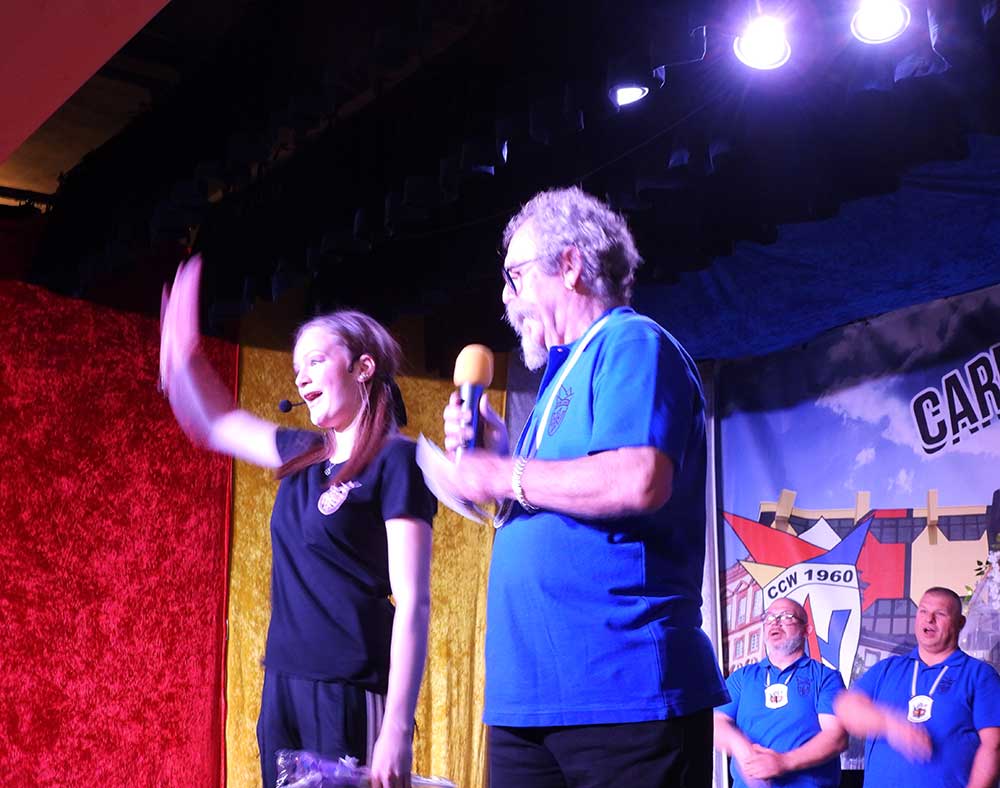 Und schon ging es mit dem abwechslungsreichen Programm los, unter dem Motto „Inselfieber“ präsentierten die Kleinsten ihren Showtanz mit tollen Kostümen. Die CCW`ler hatten es wieder geschafft ein tolles Programm auf die Beine zu stellen, so das für jeden was dabei war, ein bunter Mix fürs Auge und Gehör. Marie Hofmann erzählte in der Bütt aus ihrem jungen Leben. Mit bekannten Hits von Elvis begeisterte Wout Willems die Gäste, er musste so manche Zugabe singen. Die Malle Mäuse vom CCW rockten wie immer die Bühne mit ihren bekannten Hits. die zum mitsingen einluden. Tobias Balz als Bauer Sepp mit seiner Bütt vom Bauernhof und einer Taxifahrt hatte er die Lacher auf seiner Seite, als Taxifahrer holte er sich Wout Willems aus dem Publikum auf die Bühne. Die Garden begeisterten mit ihren Garde-Show und Marschtänzen. Einen tollen Hip Hop Tanz präsentierten die Mädels von de CHANTAL MILLER ACADEMY. Miss Caroline sorgte mit ihrem Gesang für große Begeisterung, auch sie musste natürlich eine Zugabe singen. Als Comedy und Travestikünstler betrat Markus Beisel als Celine Bouvier in einem goldenen Kleid und hohen High Heels die Bühne und babbelte wie ihr die Schnutt gewachsen ist. Wunderschöne Kostüme und ein toller Tanz präsentierten die Manylegs unter dem Motto„Auf dem Mars ist die Hölle los“. Nochmals tolle Comedy präsentierte Rene Weintz. Zum Schluss gab es nochmals was fürs Auge, als die Aktivengarde ihren Showtanz „Aus Rot wird Wild präsentierte“.
