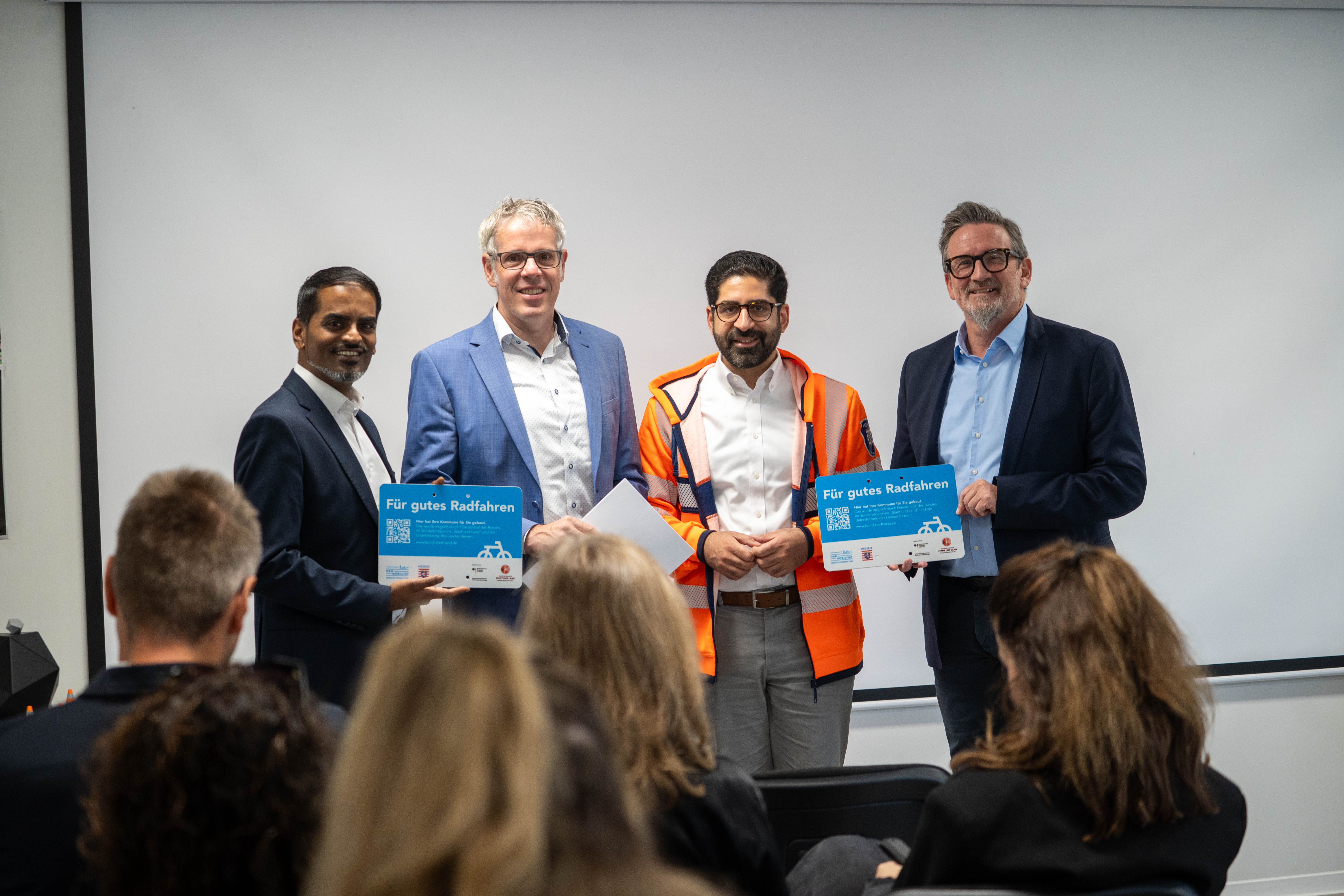 Kreis Bergstraße (kb)-Der hessische Verkehrsminister Kaweh Mansoori überreichte Landrat Christian Engelhart kürzlich bei seinem Besuch im Infocenter Hessen Mobil in Mörlenbach den Förderbescheid für den Neubau des Geh- und Radweges entlang der K12 zwischen Birkenau und Mörlenbach. Die Übergabe markiert den ersten Meilenstein des Projektes und ebnet den Weg für das weitere Vorhaben.