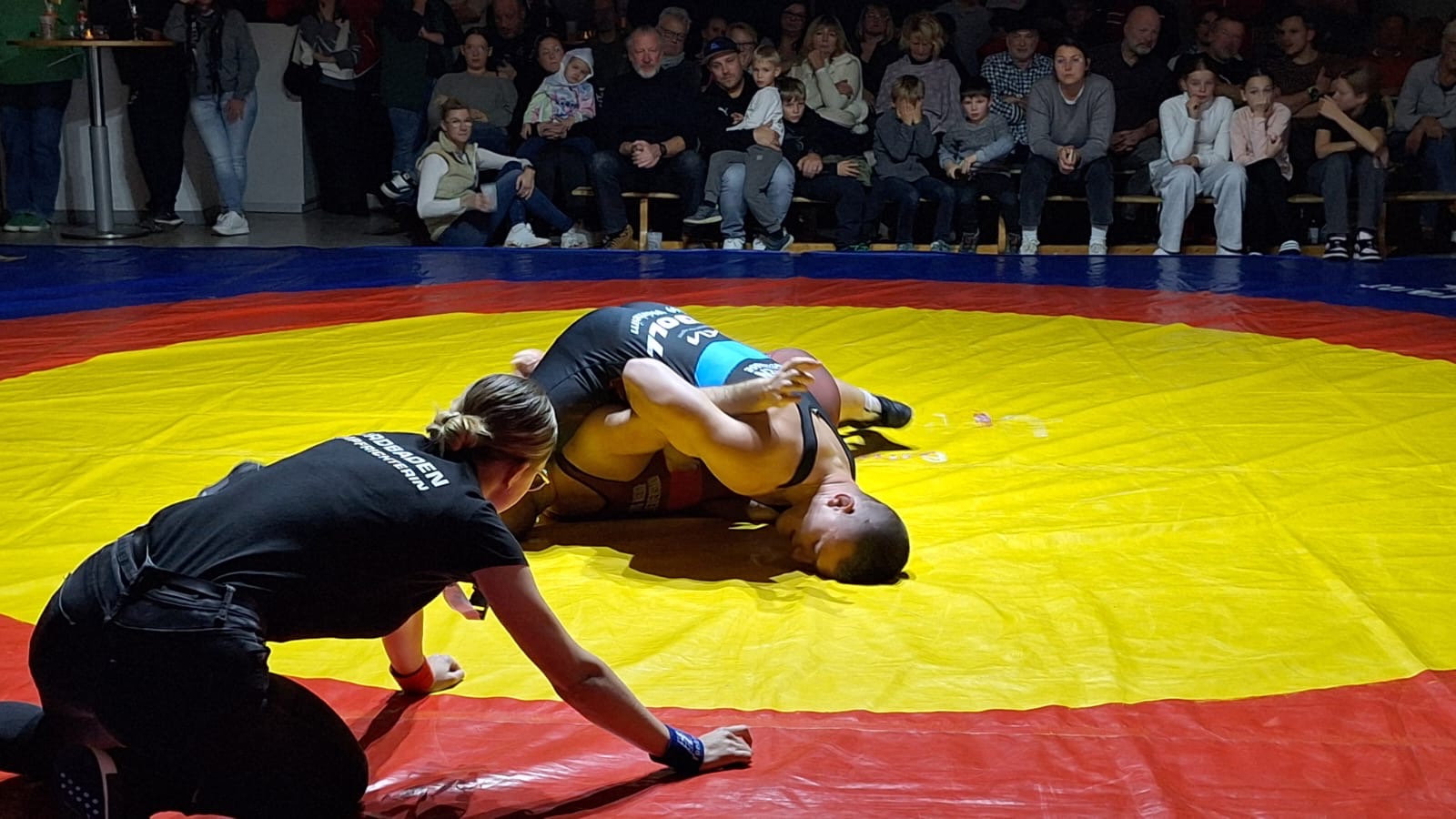Im Schwergewicht (130 kg FS) knüpfte Simon Schmider sofort daran an. Er blieb ruhig, arbeitete konsequent und baute seine Führung Stück für Stück aus. Nach etwas mehr als einer Minute legte er Lukas Hofmann auf die Schultern – ebenfalls ein Vierer für die Gäste.