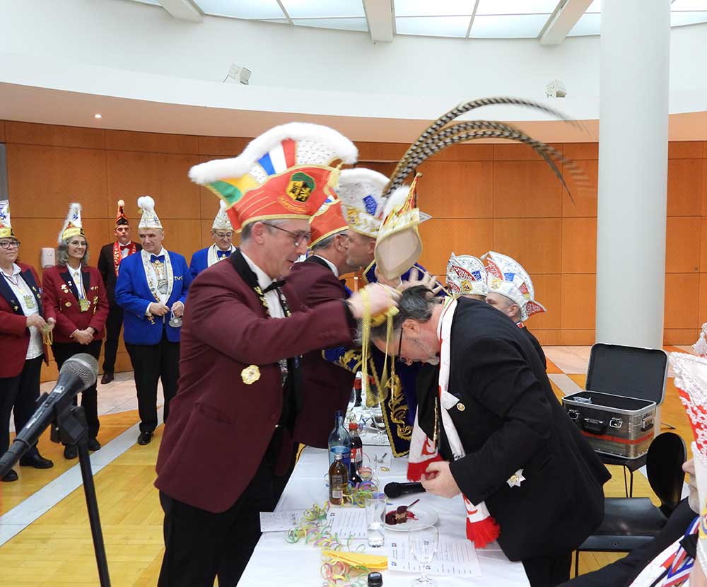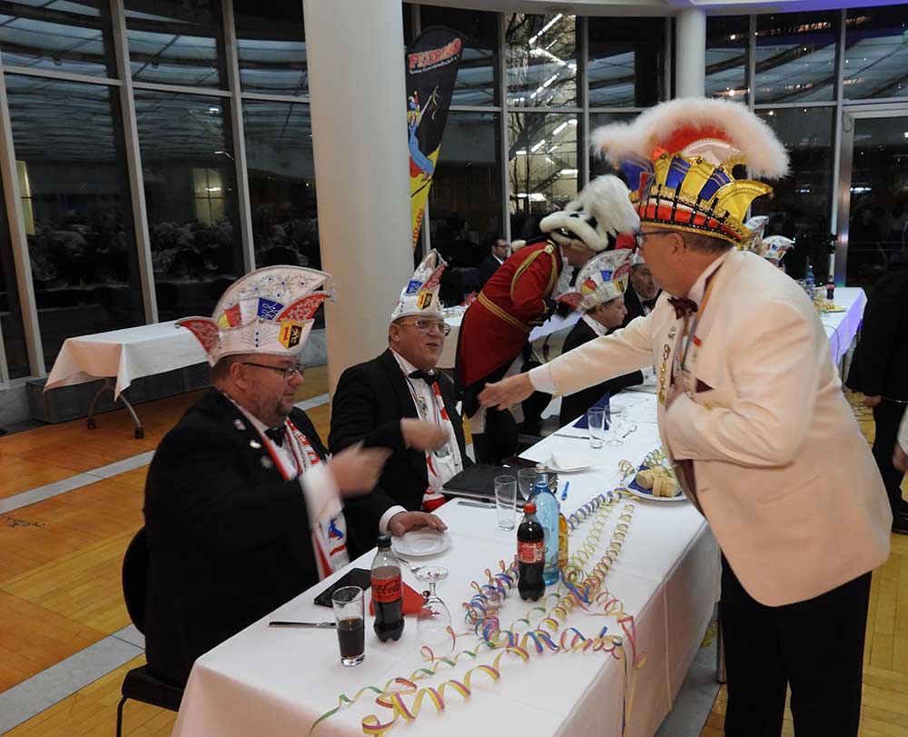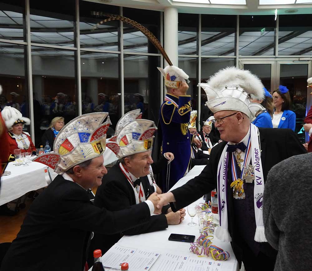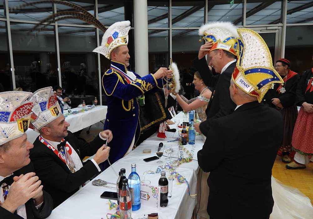 Zahlreiche Karnevalsvereine aus Nah und Fern, darunter viele Prinzessinnen und Prinzen, folgten gerne der Einladung und überbrachten ihre Präsente sowie herzliche Grußworte und übergaben ihren Jahresorden. Im Gegenzug übergab Prinz Fabian I. seinen Prinzenorden, auf alle Ausgezeichneten klangen laut die AHOI`s durch den Saal.