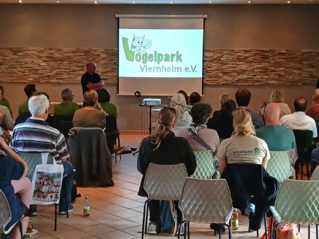 Die Fortbildung mit dem Titel „Basiswissen Vögel“ war ein voller Erfolg. Teilgenommen haben nicht nur ehrenamtliche Helferinnen und Helfer des Vogelparks Viernheim, sondern auch Fachleute aus Zoos, anderen Vogelparks und private Tierhalter aus dem gesamten Bundesgebiet. Der Vortrag von Diplom-Biologe Jürgen Hirt (BNA) behandelte wichtige Grundlagen der Vogelhaltung. Nach der Begrüßung durch den Vereinsvorsitzenden Dirk Faltermann standen zunächst rechtliche Aspekte wie das Tierschutzgesetz, Artenschutz, Gehegegrößen und Transportregelungen auf dem Programm. Anschließend ging es um die Biologie der Vögel, die Grundlagen der Ernährung und das Erkennen kranker Tiere. „Es ist immer gut, vertrautes Wissen nochmals zu vertiefen und neue Erkenntnisse zu diskutieren“, resümierte Rainer Berenz, Vorsitzender des Vogelparks Bobenheim-Roxheim e. V. und Teilnehmer der Schulung. Am Ende der Veranstaltung ließ es sich Vereinsvorsitzender Dirk Faltermann nicht nehmen, die Interessierten persönlich durch den gepflegte Viernheimer Vogelpark zu führen – und so den lehrreichen Tag gemütlich ausklingen zu lassen. „Solche Fortbildungen sind ein Gewinn für unsere tägliche Arbeit – und vor allem für das Wohl der Tiere“, betonte Faltermann abschließend.