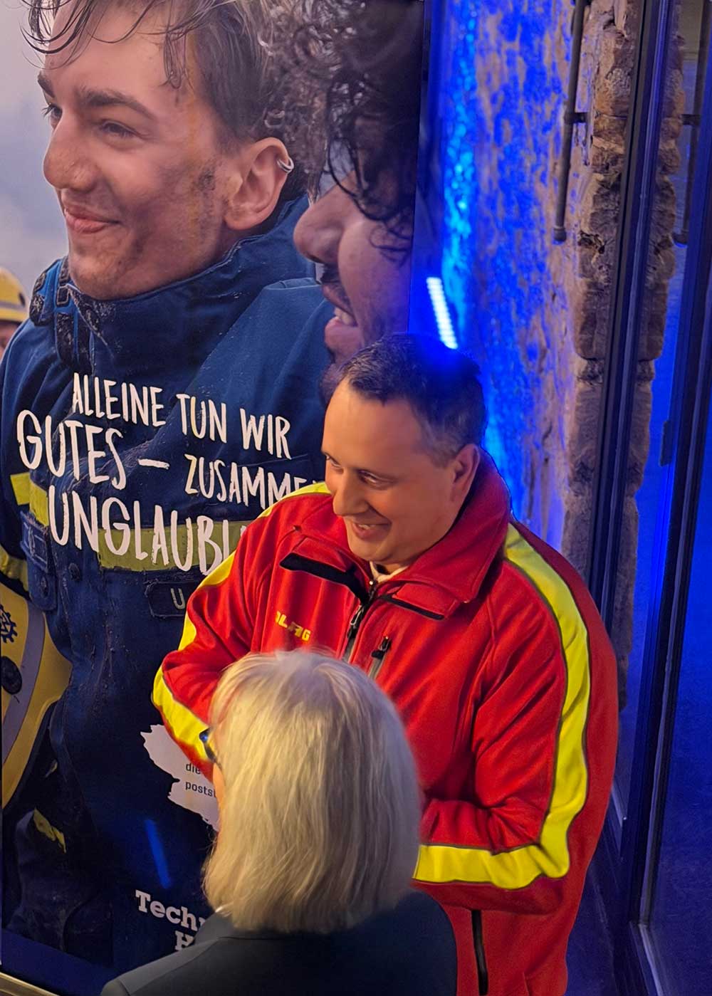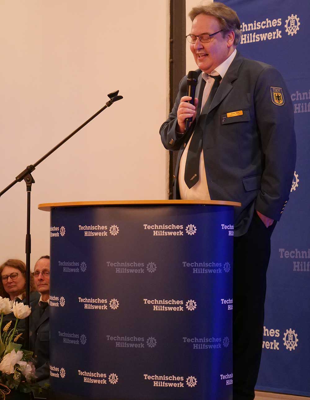 Markus Jaugitz, Vizepräsident der THW-Bundesvereinigung, blickte auf ein langes gemeinsames THW-Leben zurück. Früher habe der Blick oft nur bis zur Grenze des eigenen Ortsverbands gereicht, heute sei überregionale Zusammenarbeit selbstverständlich. Die Freundschaft und der fachliche Austausch mit Volker Patzwaldt seien jedoch schon früh über diese Grenzen hinausgegangen. Als Zeichen der Verbundenheit überreichte er Patzwaldt ein krisensicheres Kurbelradio.