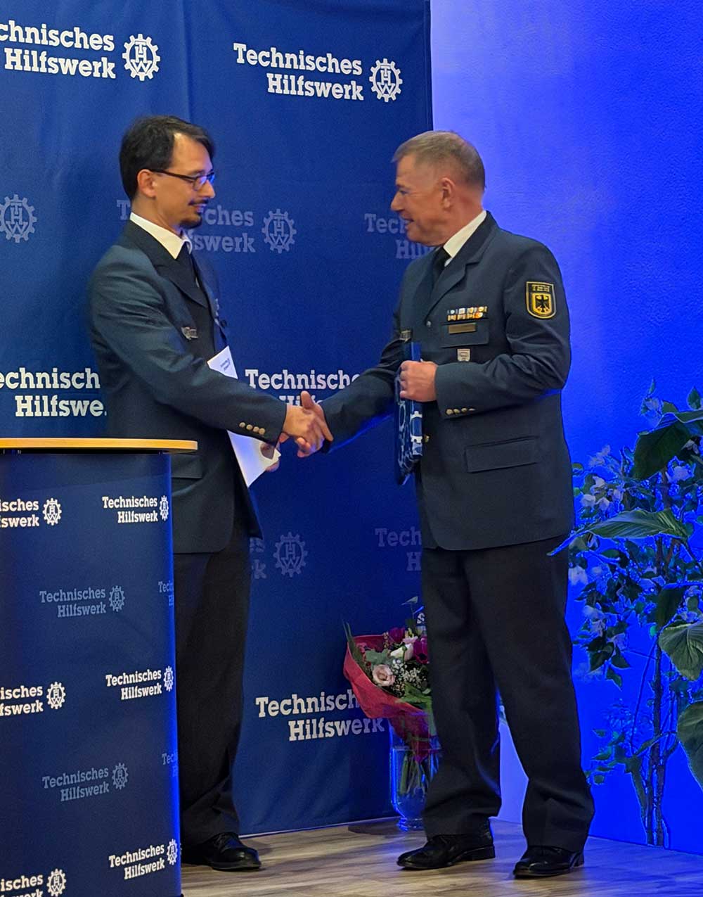 Nach mehr als drei Jahrzehnten übergab Patzwaldt die Verantwortung nun in neue Hände. Er bat um Verständnis für harte Entscheidungen, die stets im Sinne des THW getroffen worden seien, und dankte den Menschen, die ihn begleitet und unterstützt haben – insbesondere seiner Partnerin Silke sowie seiner „Ehrenamtsfamilie“ aus THW, Feuerwehr und Rettungsdienst. Seinem Nachfolger Rüdiger Frank und dessen Stellvertreter Winfried Engel wünschte er eine glückliche Hand für die kommende Zeit.