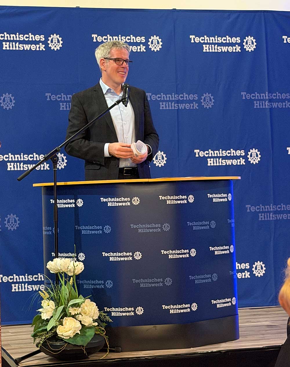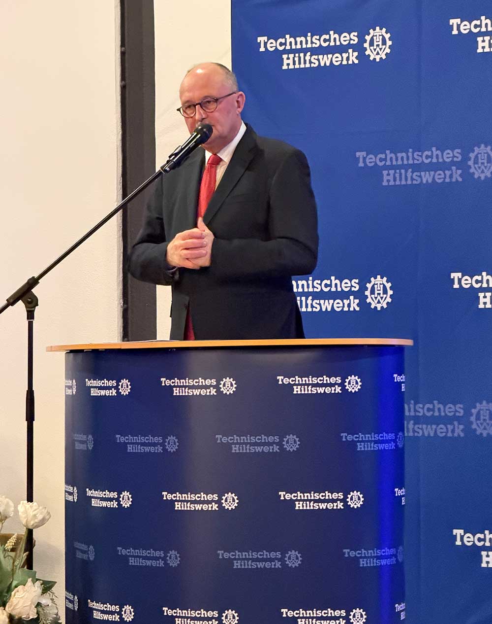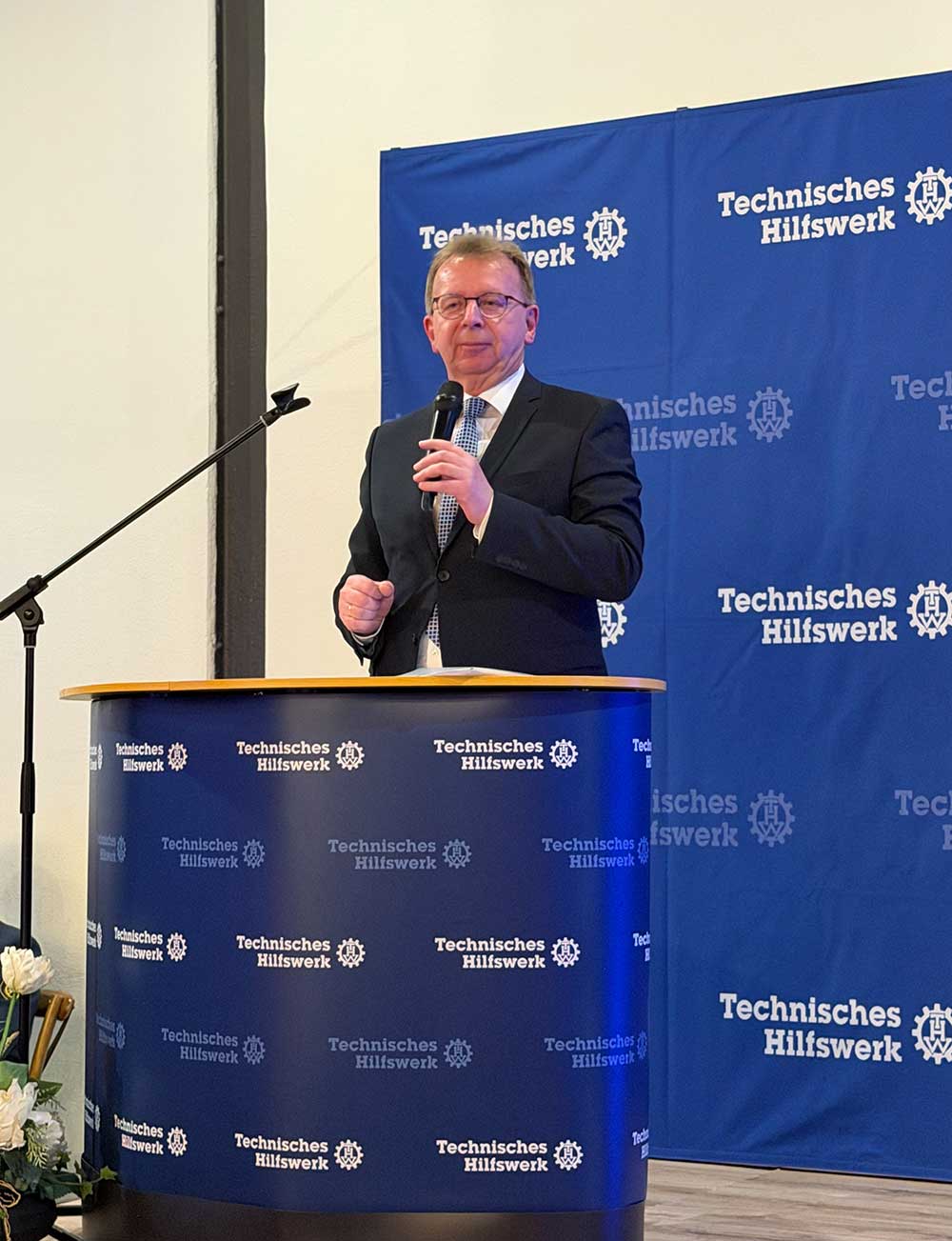 Dr. Michael Meister bezeichnete den Abend als einen besonderen Moment und ordnete die Arbeit des THW in die aktuelle weltpolitische Lage ein. Man müsse zunehmend damit rechnen, dass grundlegende Strukturen des gesellschaftlichen Zusammenlebens angegriffen würden. In solchen Situationen sei es von großer Bedeutung, dass Organisationen wie das THW auf engagierte Ehrenamtliche zählen könnten, die auch unter schwierigen Bedingungen Hilfe leisten.