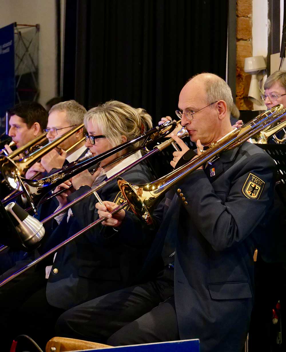 In seiner Abschiedsrede wurde Volker Patzwaldt persönlich. Ehrenamt bedeute, etwas zu geben, das man nicht kaufen könne: Zeit, Herz und Menschlichkeit. Sein Weg zum THW begann über einen Schulfreund und das Interesse am Funken. Es folgten prägende Stationen wie der Unterkunftsbau, die Arbeit in der Jugendarbeit, Auslandseinsätze, der Sturm „Lothar“ und zahlreiche weitere Herausforderungen. Auch die Gründung der THW BigBand sei aus einem pragmatischen Ansatz entstanden und habe sich zu einem wichtigen Bestandteil des Ortsverbands entwickelt.