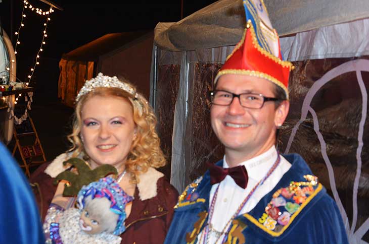 Als dann Prinzessin Yvonne I. mit dem Elferrat und danach die Ex-Elferräte und Ex-Prinzessinnen unter lautstarker Musik und Jubel der Gäste in die Halle der Sänger Einheit einmarschierten fand das „Närrische Spektakel“ seinen Anfang. Die Ex-Prinzessinnen hatten die obligatorische Prüfung für die aktuelle Prinzessin mitgebracht. Prinzessin Yvonne I. musste anhand der Musik einen Filmtitel raten. Mit dem einen oder anderen Tipp konnte sie die Aufgabe lösen. Dann gab es die Kampagnenorden für die Ex-Prinzessinnen und nach dem Eröffnungstanz gaben Prinzessin Yvonne I. und ihre Elferräte die Tanzfläche für die Gäste frei.