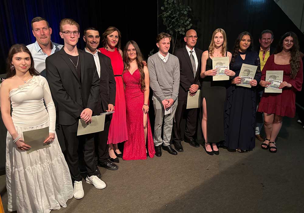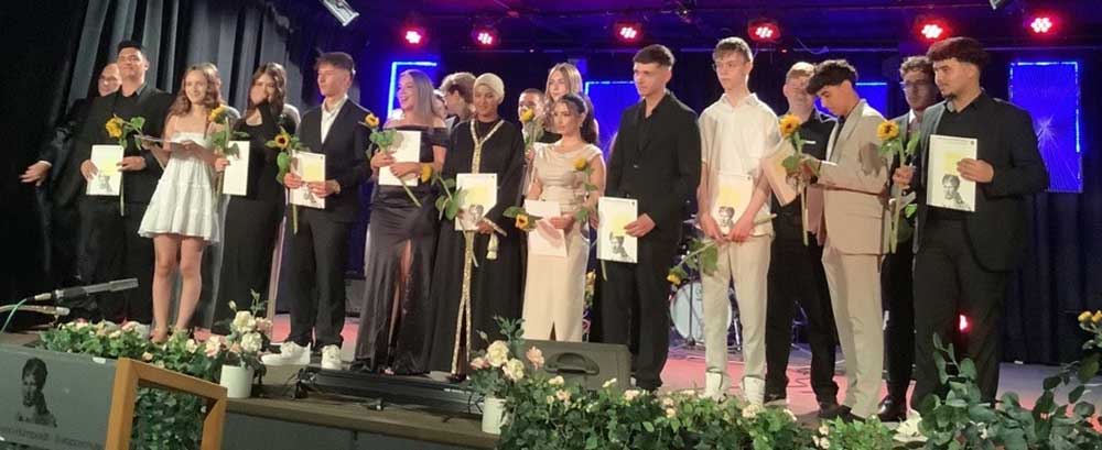 Im Anschluss verliehen Frau Schupp und Frau Adler den begehrten Humboldt-Preis des Fördervereins für die besten Abschlusszeugnisse. Dieses Jahr sind Miquel Claudio und Bahaa Madani jeweils mit der Note 1,7 die stolzen Preisträger. Auch die Klassenleitungen verliehen Buchpreise für herausragende Noten und soziales Engagement.