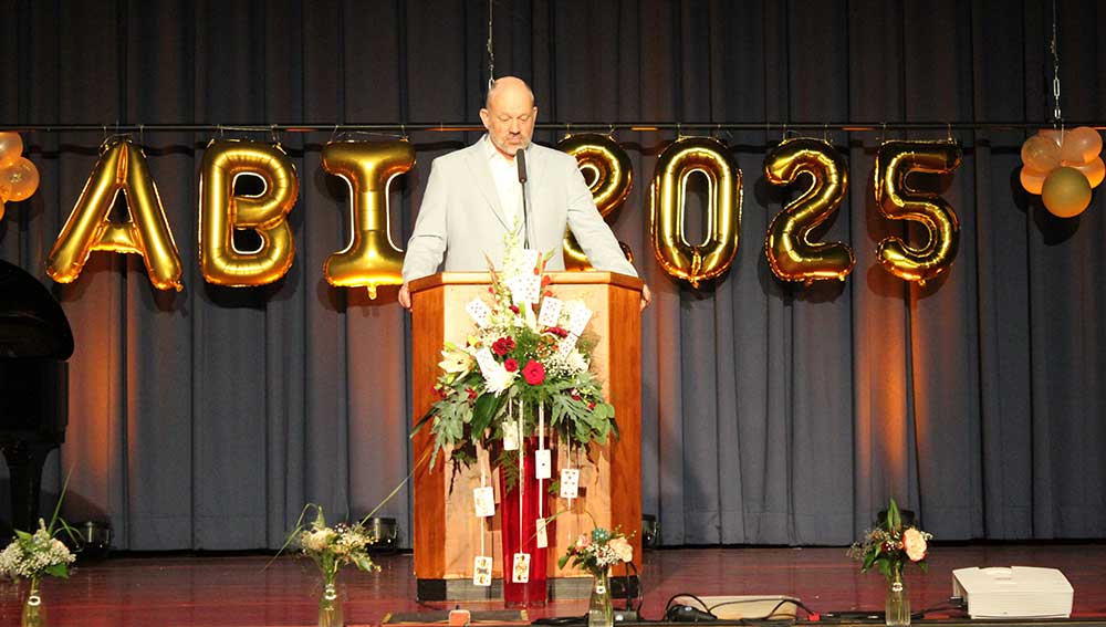 Im Anschluss begrüßte der stellvertretende Schulleiter Lutz Ackermann die Gäste und wünschte insbesondere den Schülerinnen und Schülern alles Gute für Ihre Zukunft.