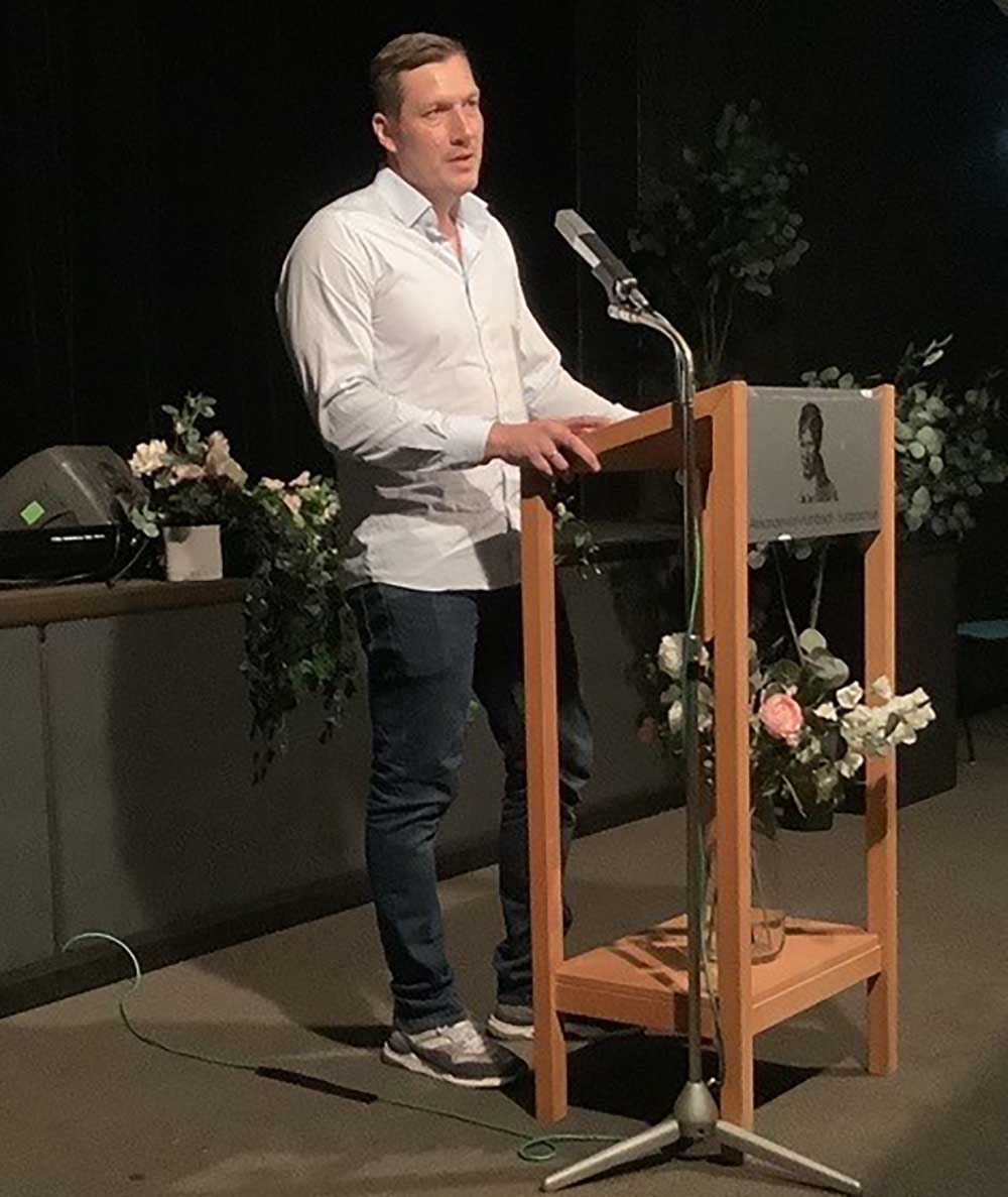 Herr Claussen richtete als Klassenlehrer der 10bR stellvertretend für alle Klassenlehrer (Herr Lottes (10aR), Frau Nägel (10cR), Herr Rieger (10dR)) das Wort an die Gäste. Die Schülerin Paulina Cesekaite beeindruckte danach alle Gäste mit ihrer Gesangsdarbietung von „Birds of a feather“. Geleitet wird die Gesangs-AG von Herrn Zielasko.