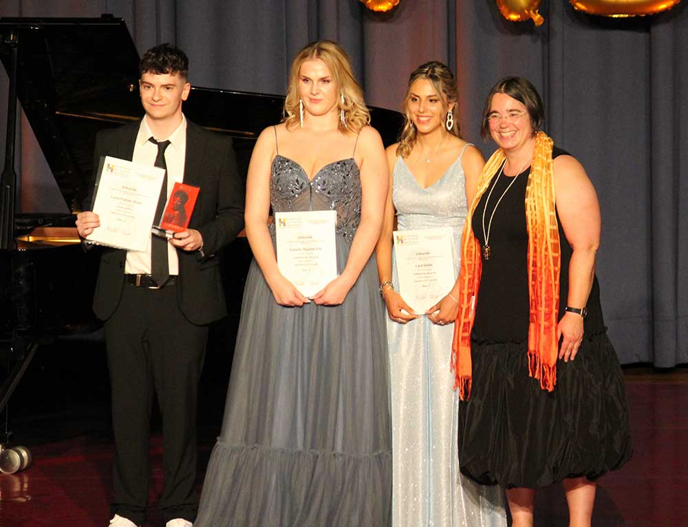 Auch für weitere besondere Leistungen wurden Preise vergeben. So hatten Charlotte Brechtel, Carolin Erb, Mara Hunger Hannah Mahler, Zoe Ulrich und Emma Weber jeweils in einer und teilweise sogar in beiden mündlichen Abiturprüfungen beeindruckende 15 Punkte erreicht. Luca Stahl erhielt von Herrn Römer, dem Leiter des Fachbereichs III einen Preis für außerordentliche Leistungen im Fach Mathematik. Luca Biereth und Paul Schupp wurden für ihre erfolgreiche Teilnahme an der Chemie-AG bzw. Luca auch für seine erfolgreiche Teilnahme an Jugend Forscht geehrt.