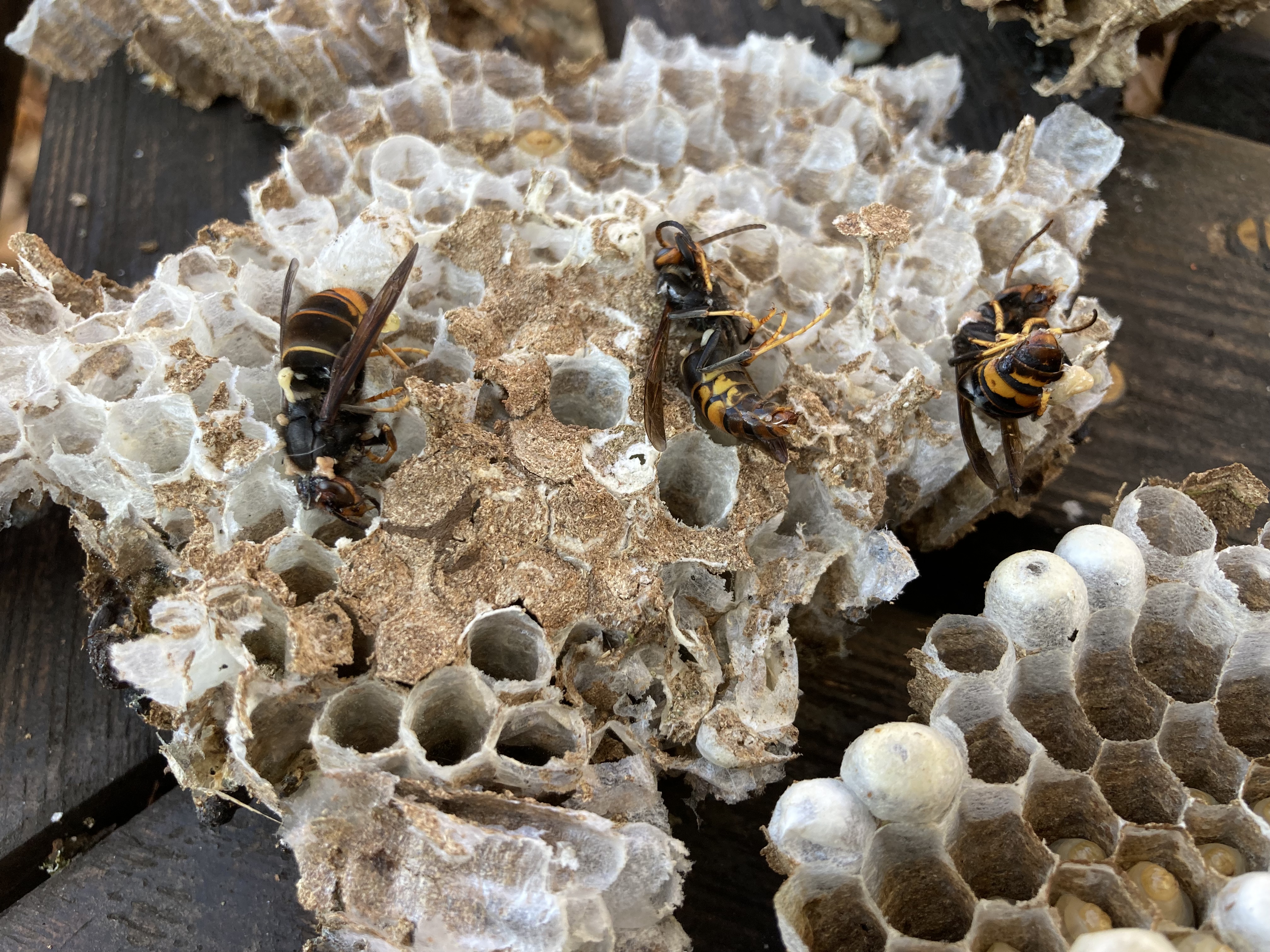 Viernheim (Falkenstein/Bugert) – Obwohl es draußen zuletzt Minusgrade hatte und die meisten Insekten sich längst für den Winter verkrochen haben, sind sie weiter im Einsatz: die beiden Viernheimer Jäger der asiatischen Hornisse. Denn jetzt, da die Bäume ihr Laub verlieren, werden die Nester des eingewanderten Insekts sichtbar. Und in vielen von ihnen findet sich auch jetzt noch Brut.