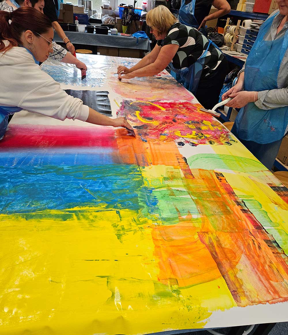 Auch Fachpersonal hatte die Gelegenheit, sich in dieser besonderen Maltechnik zu erproben. Im Rahmen eines Workshops für Multiplikatoren, der Teil der Veranstaltungsreihe „Gemeinsam stark für Bildung: Bildungsbeirat Viernheim“ war, stand das kreative Erleben im Mittelpunkt. Darüber hinaus wurden im Laufe des Jahres weitere Workshops für Jugendleiter und pädagogisches Personal angeboten. Besonders gefragt war die Weiterbildung „Filzen – Grundkenntnisse und praktische Anwendung“, die im Rahmen der Filzwochen im September stattfand und vollständig ausgebucht war.