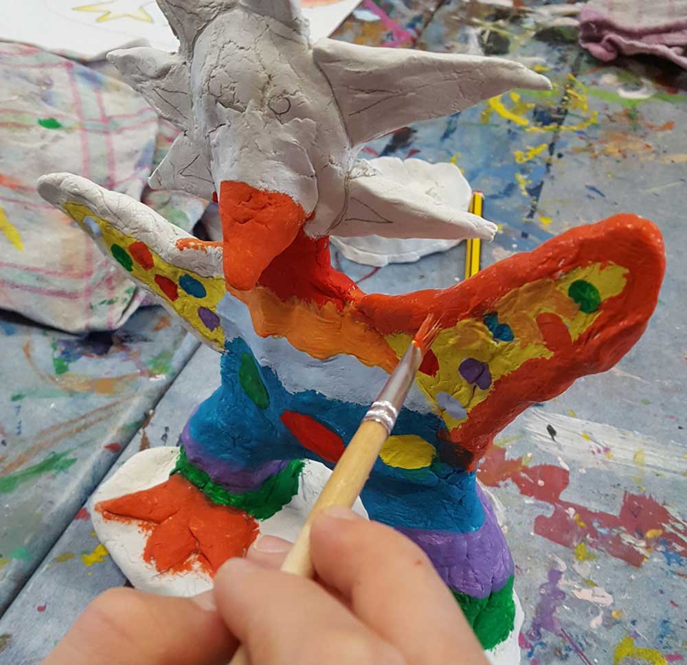 Kinder im Grundschulalter dürfen sich besonders freuen, denn während der Schulzeit wird bis zu drei Mal pro Woche ein abwechslungsreiches Programm angeboten. Die Bandbreite der Aktivitäten reicht vom Malen an der Staffelei über offene Bastelaktionen mit der sogenannten Krims-Krams-Kiste bis hin zu fantasievollen Mosaikarbeiten oder dem Bau von Heißluftballons aus Pappmaché. Während der Ferienwochen wird die Jugendwerkstatt zudem zu einem festen Bestandteil des Feriendomizils. Dann entstehen themenbezogene Werkstücke, die beim traditionellen Elternnachmittag freitags stolz präsentiert werden.