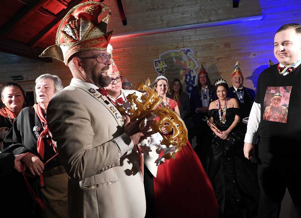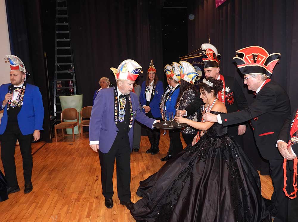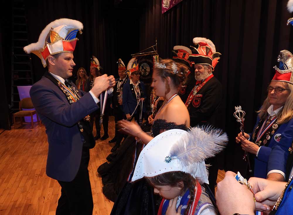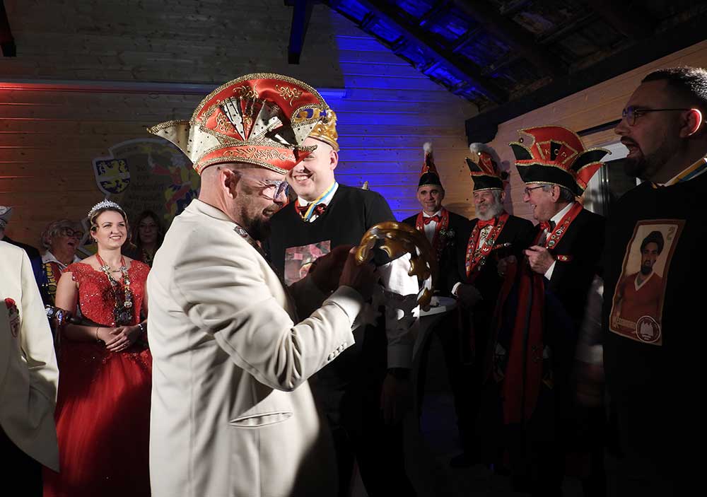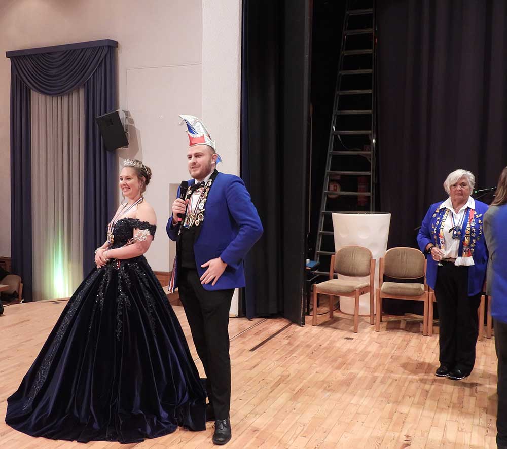 Präsident Lukas Weber und Vize-Präsident Alessandro Beradi führten durch den Abend, die beiden erwartete gleich zu Beginn eine Überraschung. Der Karnevalverein Karlsterner Hexenzunft hat den Präsident und seinen Vize kurzerhand zum Prinzenpaar ernannt, natürlich mit allem was dazu gehört, eine Krone und das Zepter, dies war ein besonderes Highlight von der Veranstaltung und sorgte bei den zahlreichen Gästen für große Begeisterung.