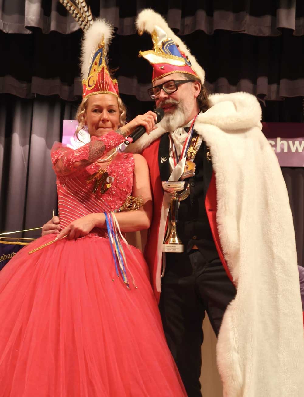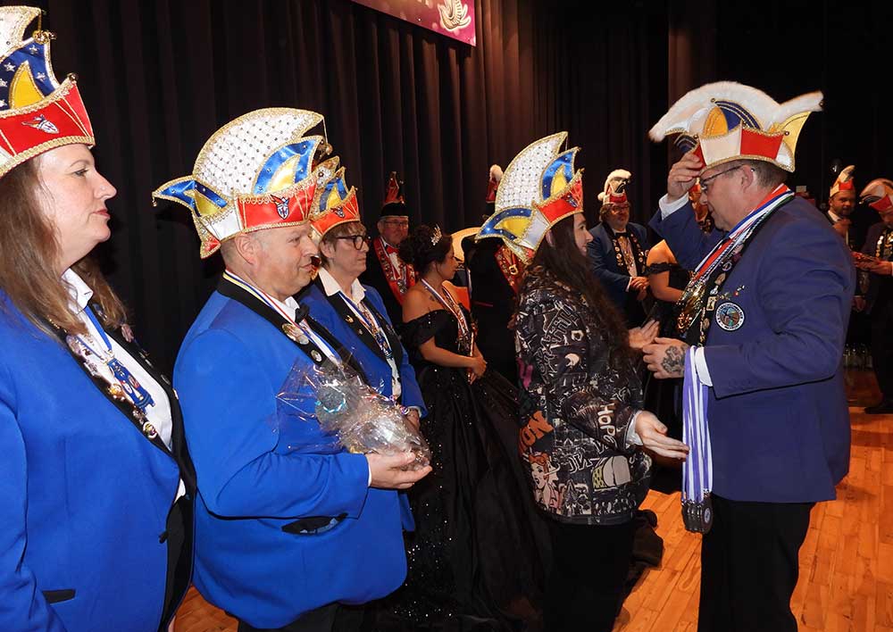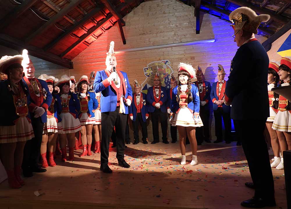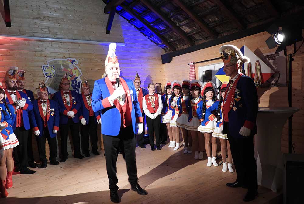 Präsident Lukas Weber und Vize-Präsident Alessandro Beradi führten durch den Abend, die beiden erwartete gleich zu Beginn eine Überraschung. Der Karnevalverein Karlsterner Hexenzunft hat den Präsident und seinen Vize kurzerhand zum Prinzenpaar ernannt, natürlich mit allem was dazu gehört, eine Krone und das Zepter, dies war ein besonderes Highlight von der Veranstaltung und sorgte bei den zahlreichen Gästen für große Begeisterung.