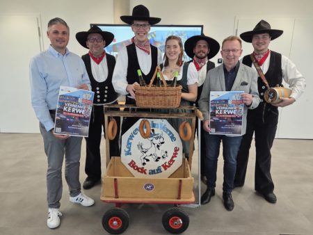Der Kerweverein startet am Kerwesamstag (8.11.) um 14 Uhr, wenn der Kerweborscht (Carlo Brandmüller) sein Kerwemädsche (Chiara Wiedenhoeft) mit einer Leiter gewappnet in der Uhlandstraße 1 abholen wird. Danach geht es um 15 Uhr gemeinsam mit dem Kerweverein sowie allen Kerwepaaren aus 30 Jahren Vereinsgeschichte und unter musikalischer Begleitung von Musik³ Richtung Innenstadt, wo vor der Apostelkirche um 15:30 Uhr die Kerwe ausgegraben und der Kerwekranz aufgestellt wird.