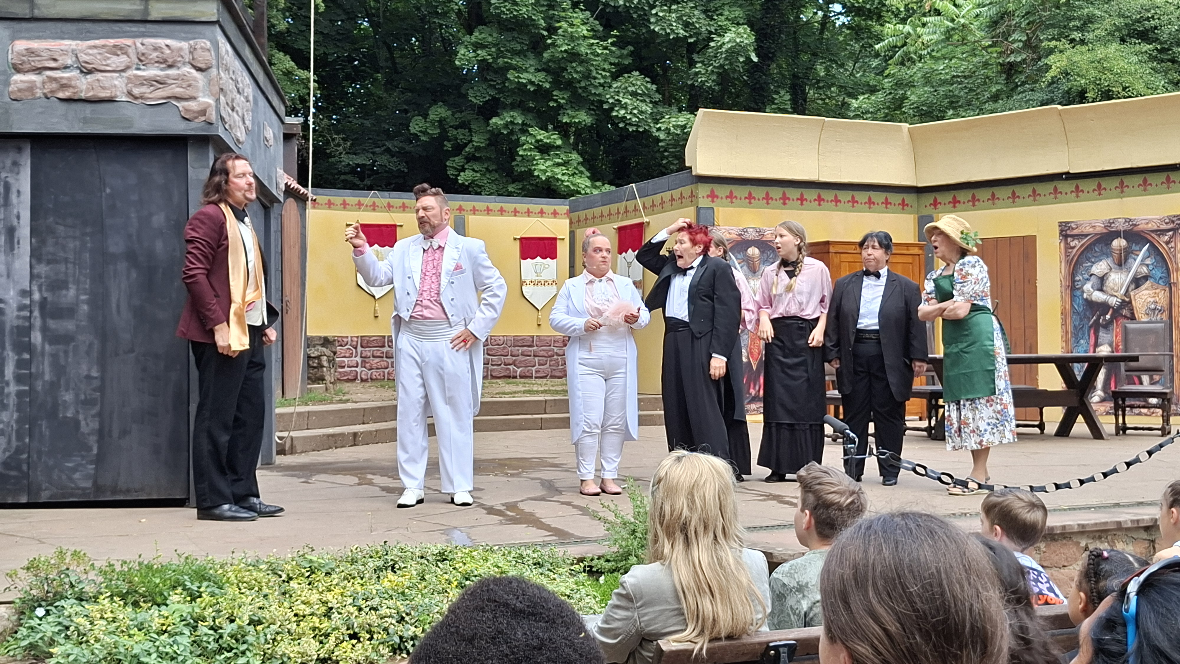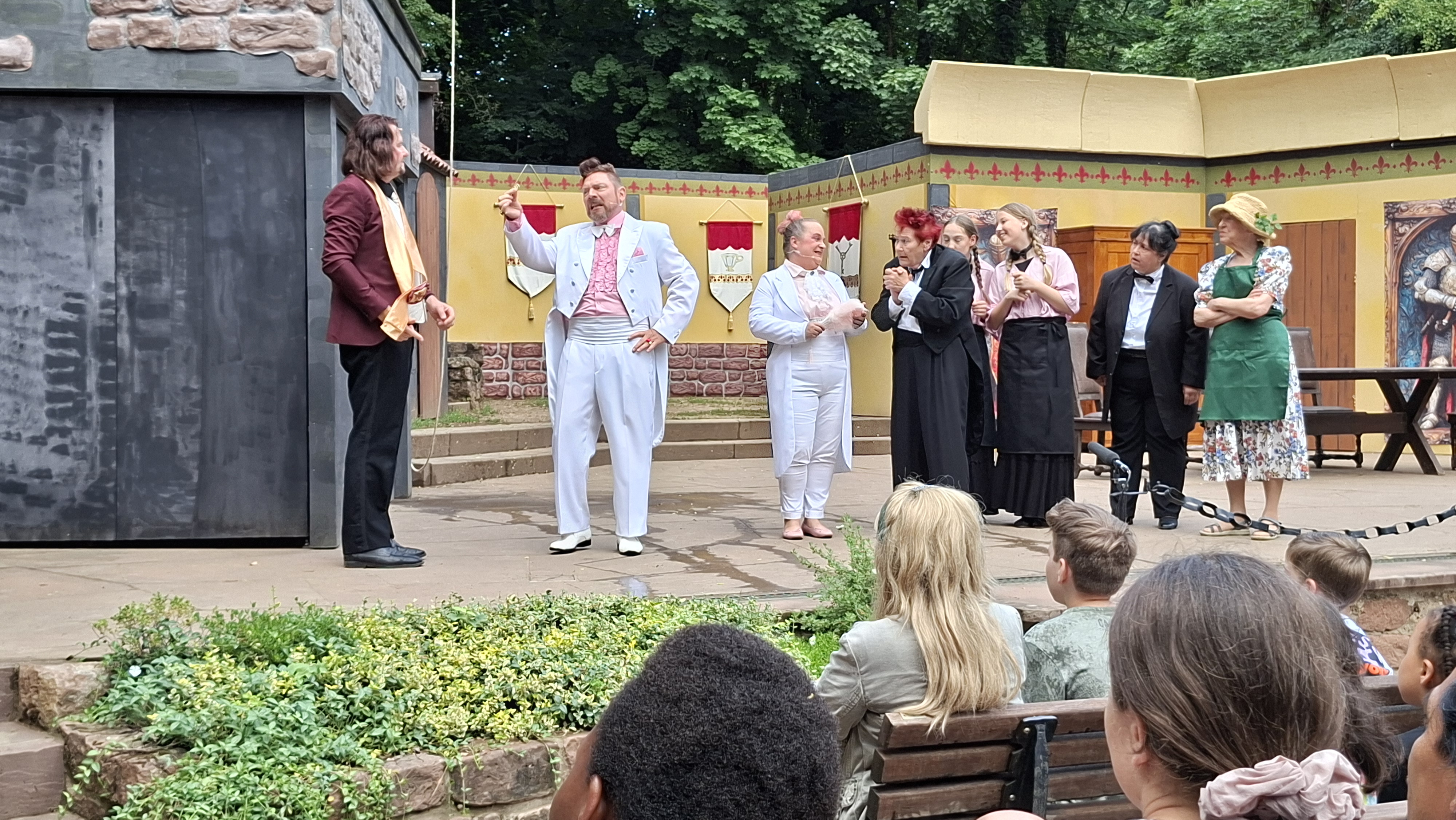 Viernheim (R.Miltner) – Bei der Lebenshilfe ist Sommerzeit auch Theaterzeit unter freiem Himmel. Bereits seit 1999 ist ein Besuch der schönen Freilichtbühne in Mannheim Gartenstadt fester Bestandteil im Vereinskalender. So auch in diesem Jahr, eine 15köpfige Gruppe der Lebenshilfe erfreut sich an diesem Sommerspektakel. „Hui Buh das Schlossgespenst“, ein packendes Theaterstück für die ganze Familie – voller Abenteuer, spannend und gewürzt mit tollen Effekten. „Wir sind gerne gesehene Gäste und fühlen uns sehr wohl in diesem herrlichen Ambiente“ auch für Menschen mit Beeinträchtigungen immer wieder ein tolles Erlebnis, so Robert Miltner Vorsitzender der Lebenshilfe. Hui Buh ist das einzige behördlich zugelassene Gespenst auf Schloss Burgeck. König Julius der 111. zieht dort ein, was Hui Buh gar nicht gefällt. Er versucht Julius zu vergraulen – mit dem Ergebnis, dass dieser Hui Buhs Spuklizenz verbrennt. Julius braucht dringend Hilfe, um den Schatz von Schloss Burgeck zu finden. Hui Buh wiederum braucht Hilfe, um seine Spuklizenz zurückzubekommen. Also tun sich die beiden zusammen und die Geschichte nimmt einen spannenden, kurzweiligen und beindruckenden Verlauf.