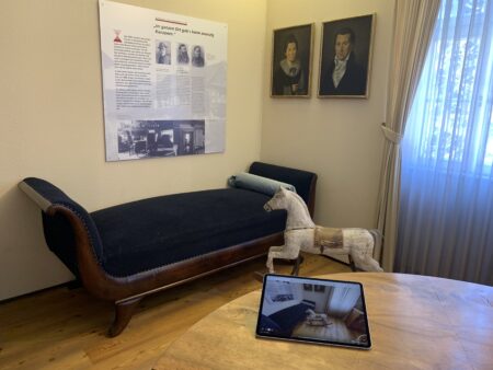 Ergänzend dazu bietet ein Tablet im Erdgeschoss einen virtuellen Rundgang durch das Museum. Damit lassen sich auch jene Bereiche der Dauerausstellung erkunden, die sich im ersten Obergeschoss, im Dachgeschoss oder im Untergeschoss befinden. Besucherinnen und Besucher erhalten so einen umfassenden Einblick in die vielfältigen Themen der Ausstellung.