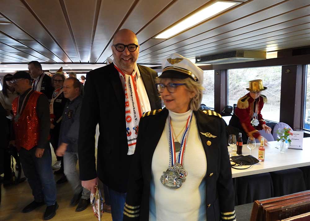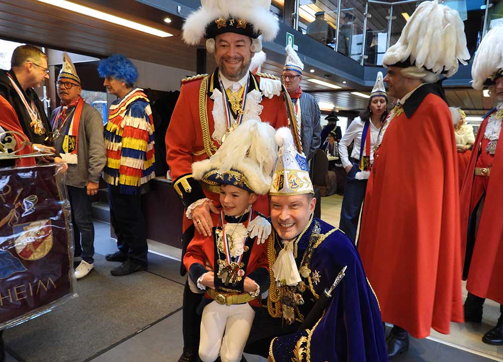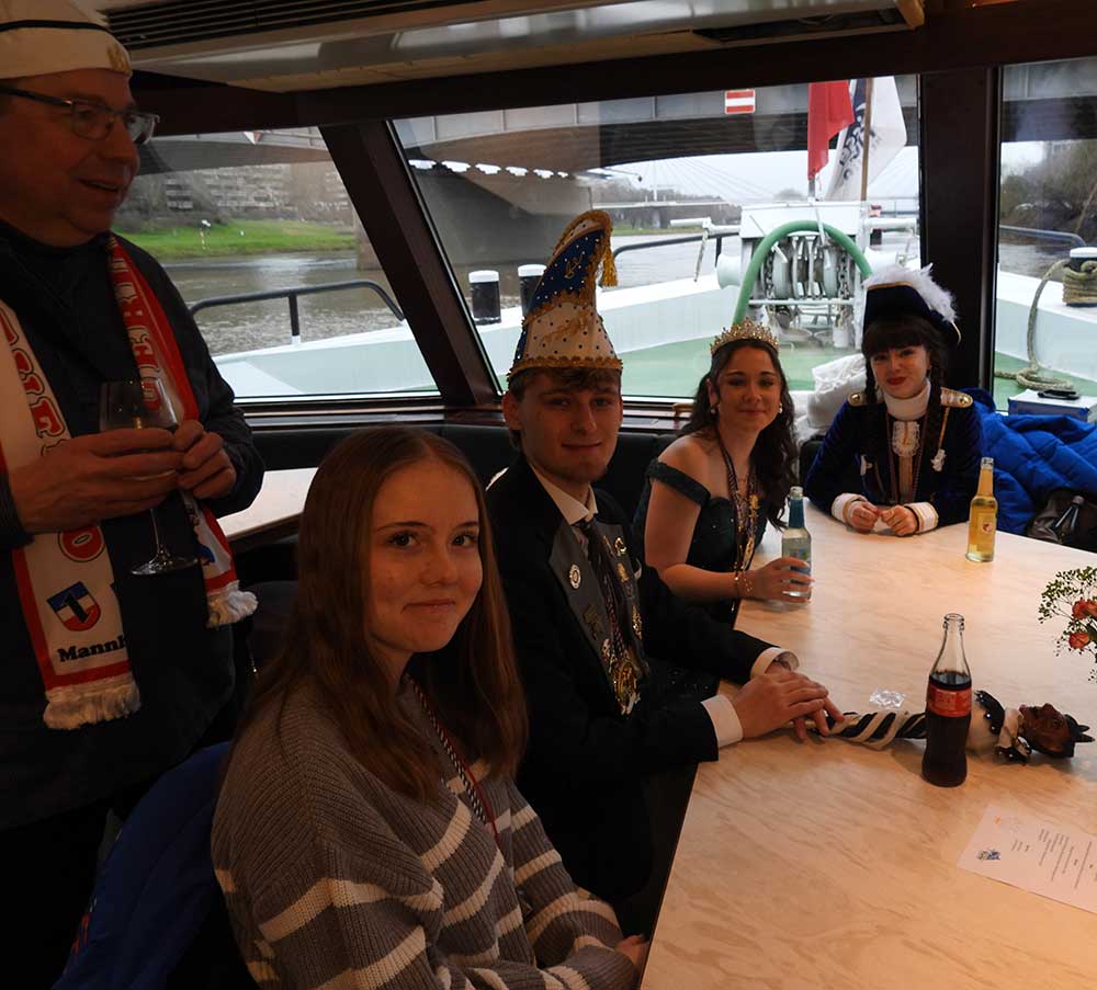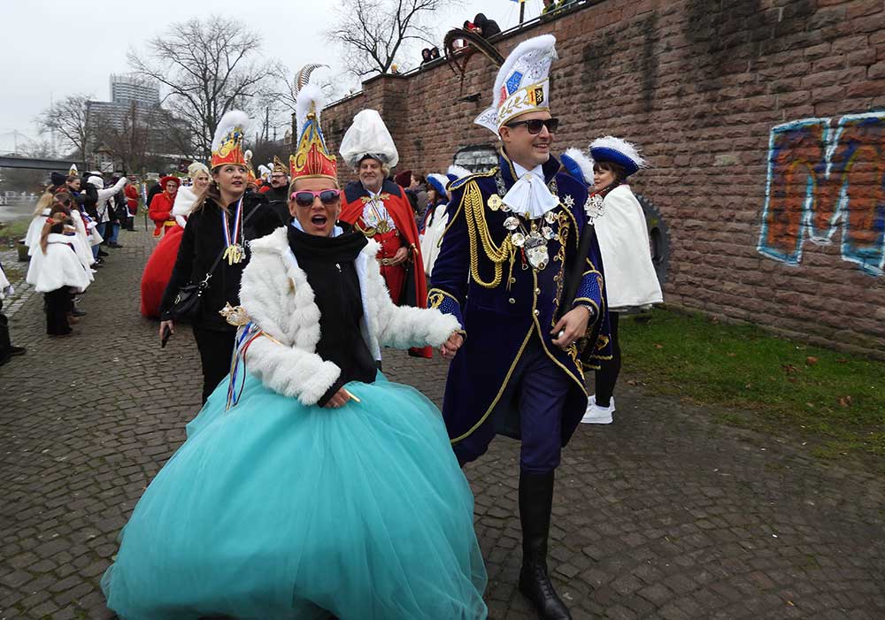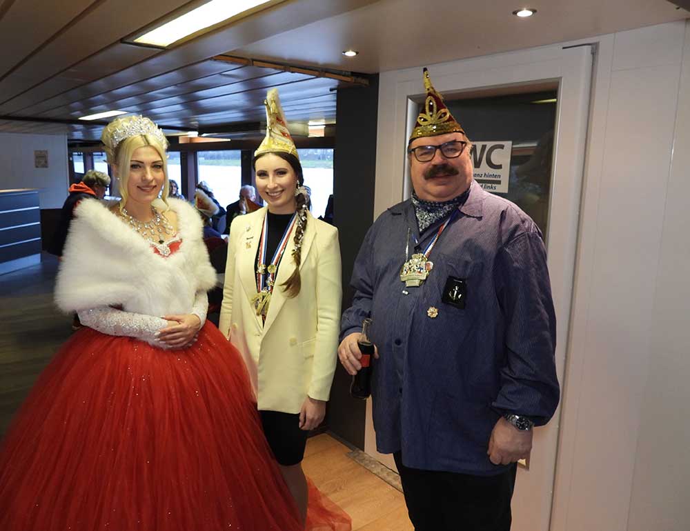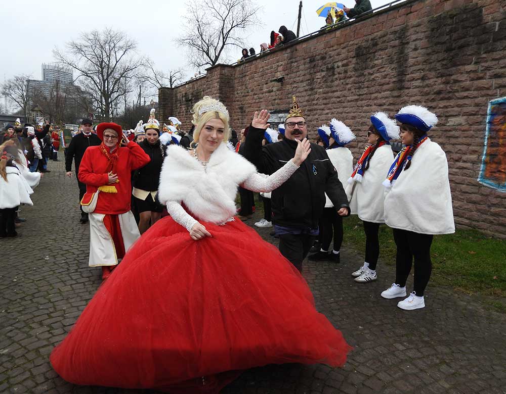 Mannheim (Vo) -Samstagvormittag (14.2.26) in Mannheim, die Karneval-Kommission Mannheim (KKM) organisierte wieder die „närrische Bootsfahrt“ zwischen Neckar und Rhein. Für zwei Stunden trafen sich gut gelaunt, das Mannheimer Stadtprinzenpaar Nadine II. und Fabian I., zahlreiche Vereine mit ihren Prinzessinen, Prinzen und ihrem Gefolge kamen gut gelaunt an Bord.
