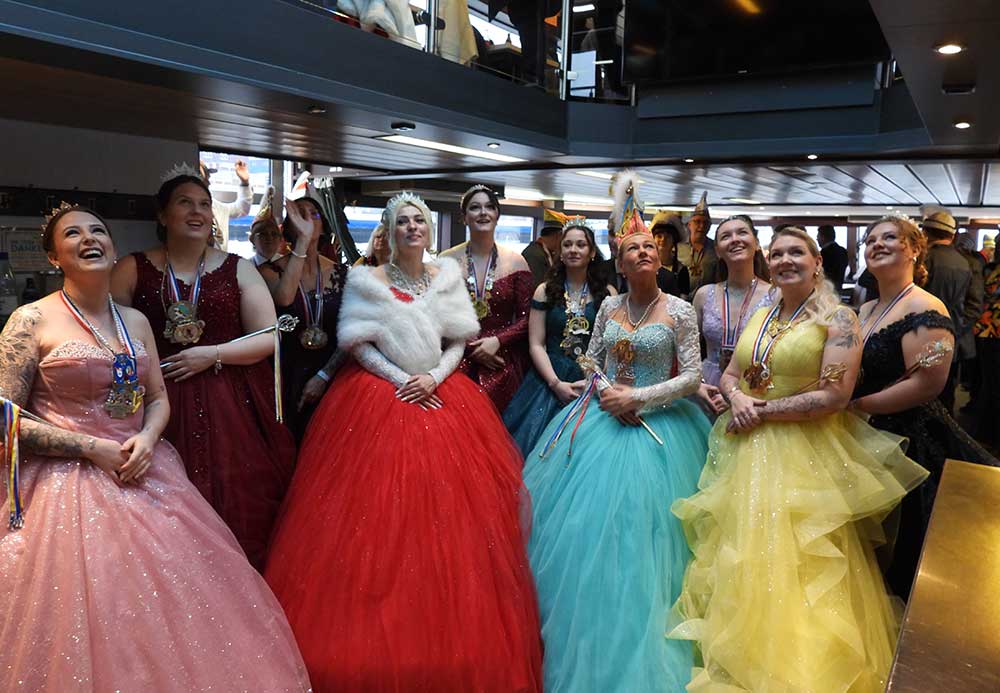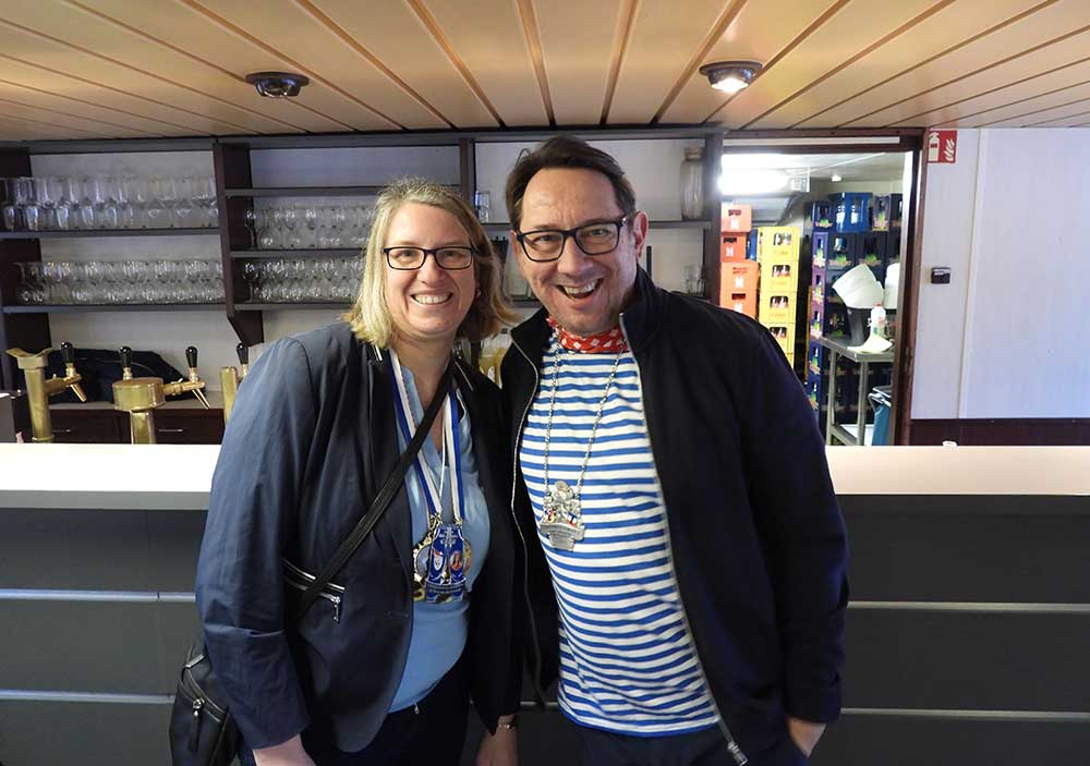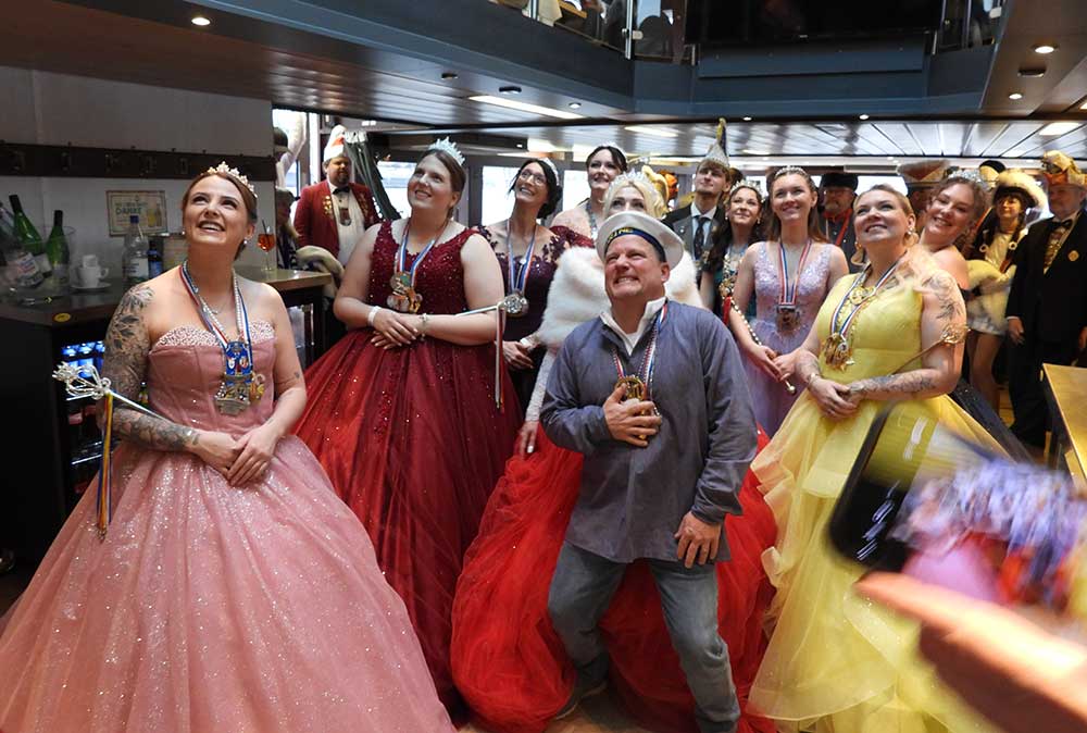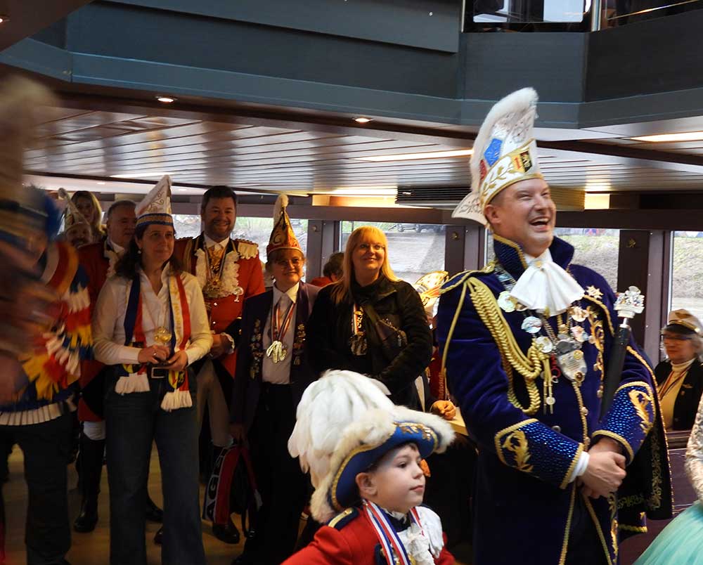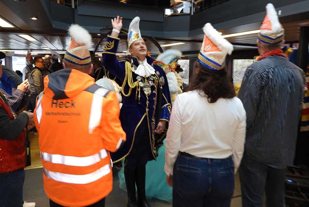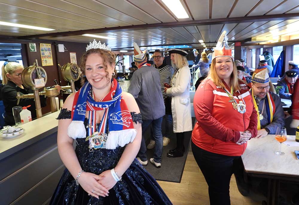 Mannheim (Vo) -Samstagvormittag (14.2.26) in Mannheim, die Karneval-Kommission Mannheim (KKM) organisierte wieder die „närrische Bootsfahrt“ zwischen Neckar und Rhein. Für zwei Stunden trafen sich gut gelaunt, das Mannheimer Stadtprinzenpaar Nadine II. und Fabian I., zahlreiche Vereine mit ihren Prinzessinen, Prinzen und ihrem Gefolge kamen gut gelaunt an Bord.