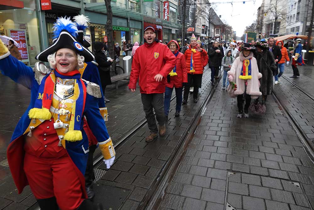 Mit lauter Musik und guter Laune zogen das närrische Volk singend und tanzend durch Mannheim.