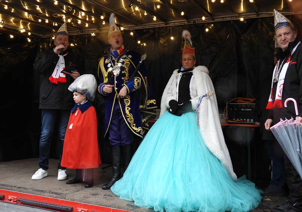 Kurz vom Wasserturm stand eine Bühne, hier wurden die Prinzessinen und ihr Gefolge vom Prinzenpaar Nadine II. und Fabian I. und einem Sprecher mit Ahoi begrüßt, jeder einzelne Verein wurde herzlich willkommen geheißen. Wer Lust hatte, konnte im Anschluß noch Riesenrad auf dem Fatsnachtsmarkt fahren. Die Karneval-Kommission Mannheim (KKM)organisiert die närrische Bootsfahrt und den „kleinen Umzug“.