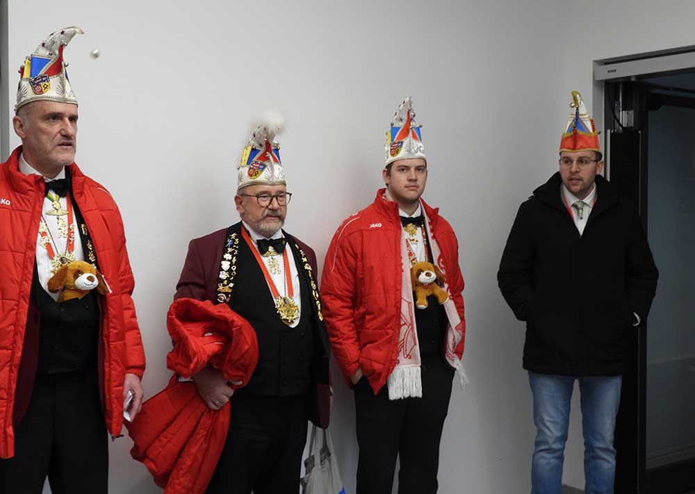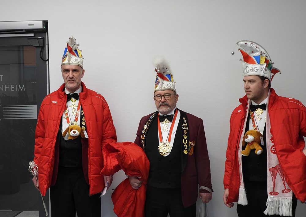 Viernheim (Vo) – Altweiberfastnacht in Viernheim, da ist der Karnevalsclub Club der Gemütlichen (CdG) immer unterwegs. So wurde Jubiläumsprinzessin Valentina I. und ihr Elferrat von der Stadt Viernheim zur närrischen Busfahrt eingeladen. Bürgermeister Matthias Baaß und Erster Stadtrat Jörg Scheidel, nahmen die Lieblichkeit und ihr Gefolge in der Innenstadt in Empfang. Dann fuhr man gemeinsam bei der närrischen Busfahrt durch Viernheim, im Bus herrschte gute Stimmung, unter anderem wurde das Prinzessinnenlied gesungen.