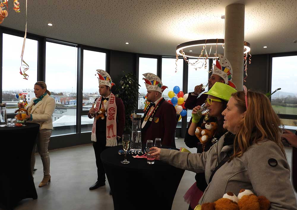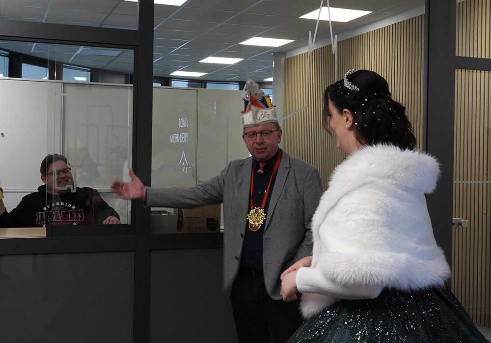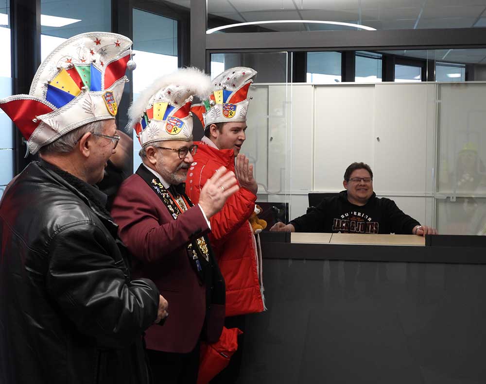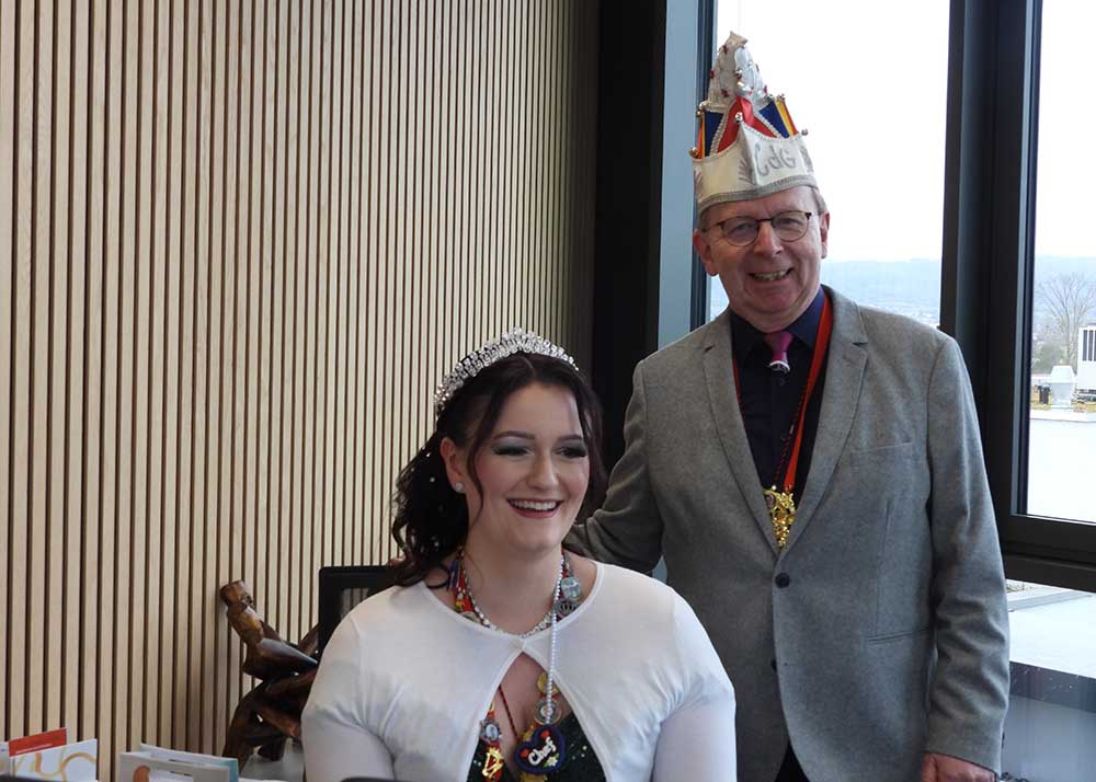 Dann ging es in die oberste Etage, dort wurde die Prinzessin in „ihr Büro“ mit tollem Ausblick über Viernheim geführt. „Natürlich habe ich die närrischen Paragraphen vom Neujahrsempfang umgesetzt“, so Bürgermeister Baaß.