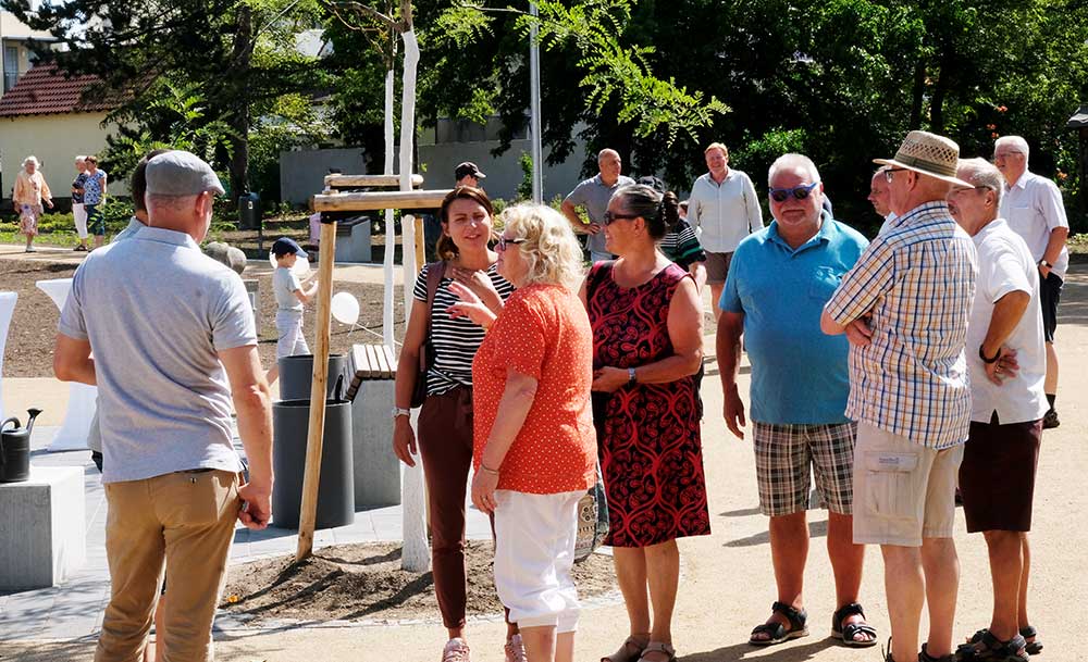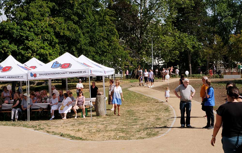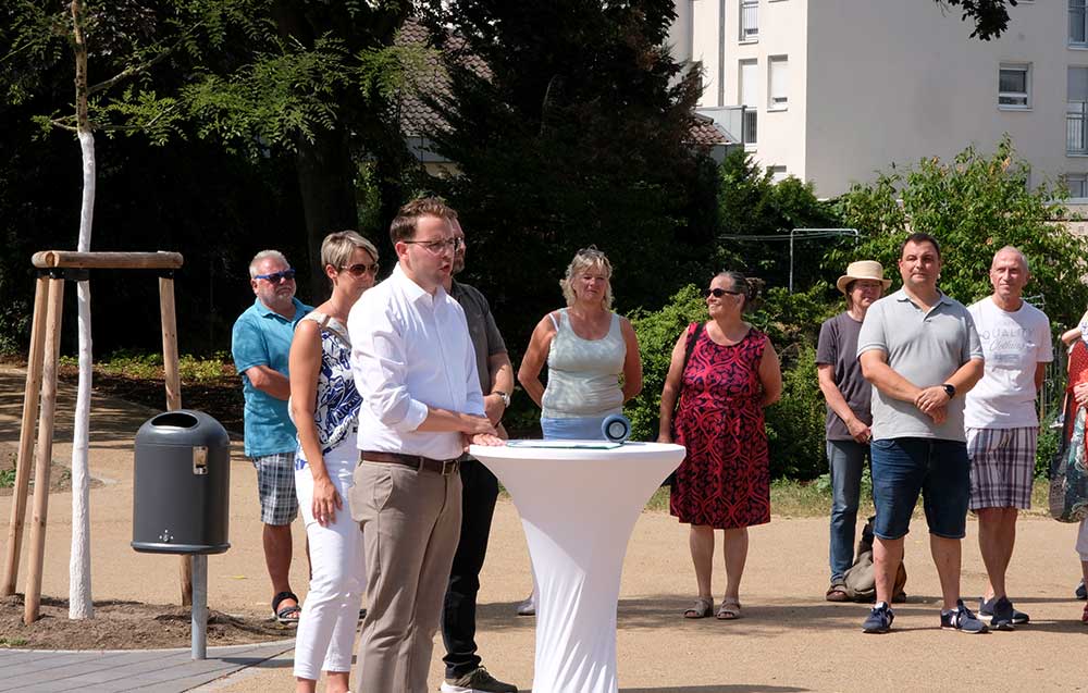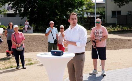 Viernheim (Vo) – Was lange wärt ist endlich vollendet, der Tivolipark ist endlich fertiggestellt. Die Parkanlage wurde gestern (8.7.23) durch die Stadt Viernheim seiner Bestimmung übergeben. Erster Stadtrat Jörg Scheidel  hatte alle Mandatsträger der Viernheimer Kommunalpolitik, die „Lokale Partnerschaft“, beteiligte Firmen, Vertreterinnen und Vertreter der Verwaltung und des Stadtbetriebs sowie der angrenzenden Baugenossenschaft und Kita St. Hildegard, sowie alle Bürgerinnen und Bürger eingeladen.